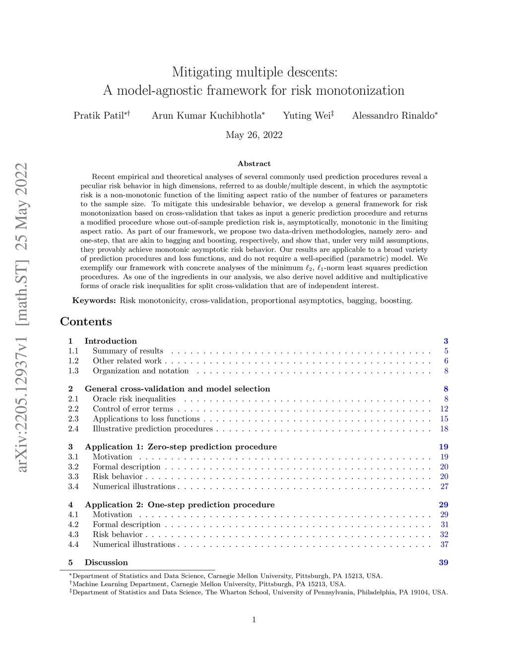 Recent empirical and theoretical analyses of several commonly used prediction procedures reveal a peculiar risk behavior in high dimensions, referred to as double/multiple descent, in which the asymptotic risk is a non-monotonic function of the limiting aspect ratio of the number of features or parameters to the sample size. To mitigate this undesirable behavior, we develop a general framework for risk monotonization based on cross-validation that takes as input a generic prediction procedure and returns a modified procedure whose out-of-sample prediction risk is, asymptotically, monotonic in the limiting aspect ratio. As part of our framework, we propose two data-driven methodologies, namely zero- and one-step, that are akin to bagging and boosting, respectively, and show that, under very mild assumptions, they provably achieve monotonic asymptotic risk behavior. Our results are applicable to a broad variety of prediction procedures and loss functions, and do not require a well-specified (parametric) model. We exemplify our framework with concrete analyses of the minimum , -norm least squares prediction procedures. As one of the ingredients in our analysis, we also derive novel additive and multiplicative forms of oracle risk inequalities for split cross-validation that are of independent interest.