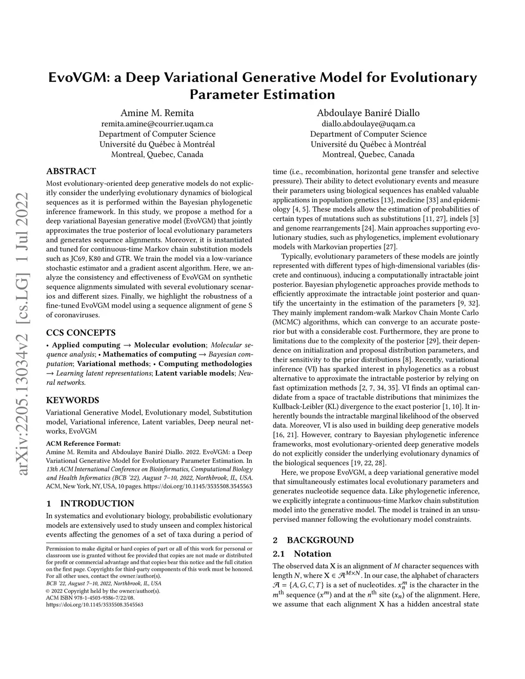 EvoVGM: a Deep Variational Generative Model for Evolutionary Parameter