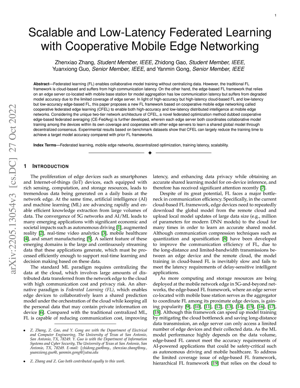 Scalable and Low-Latency Federated Learning with Cooperative Mobile Edge