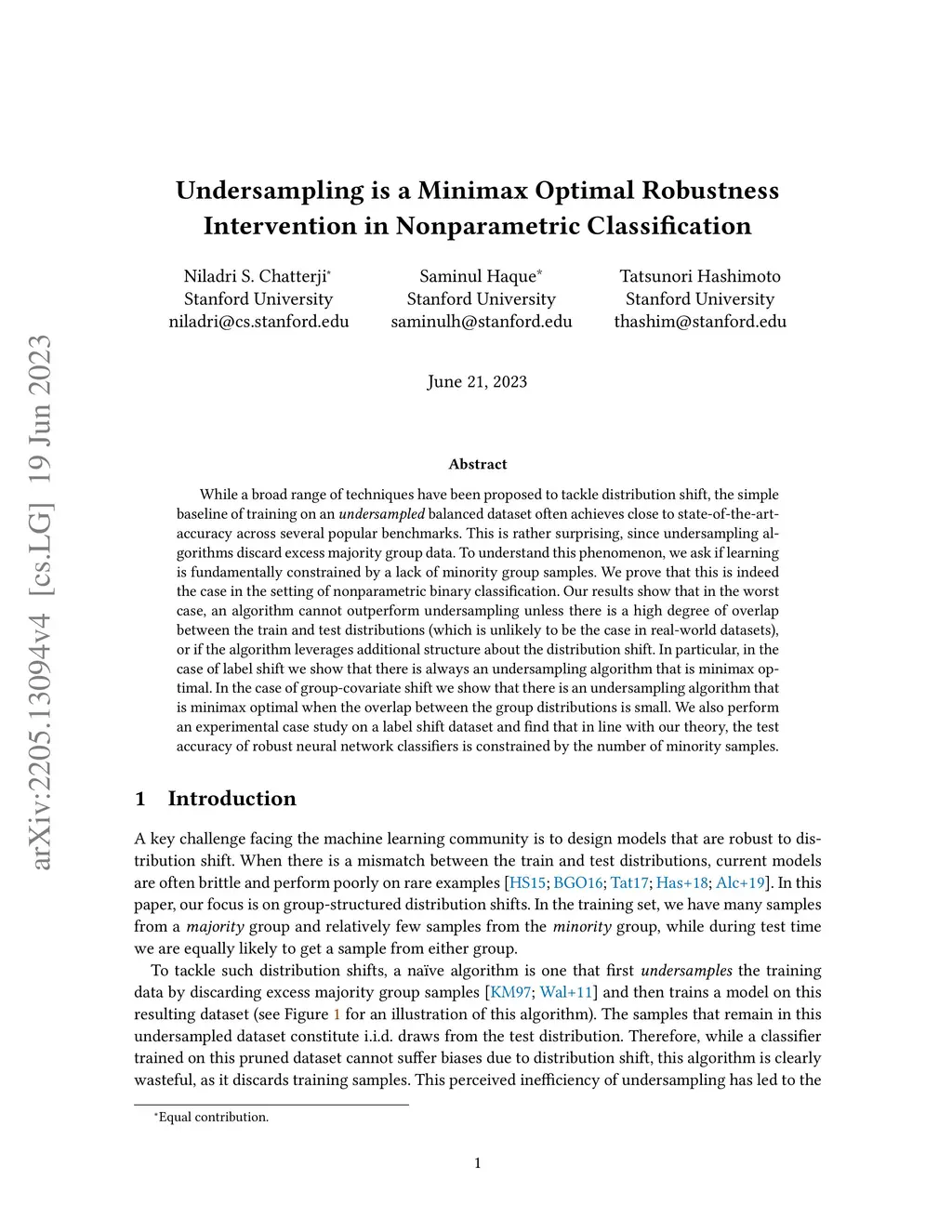Undersampling is a Minimax Optimal Robustness Intervention in