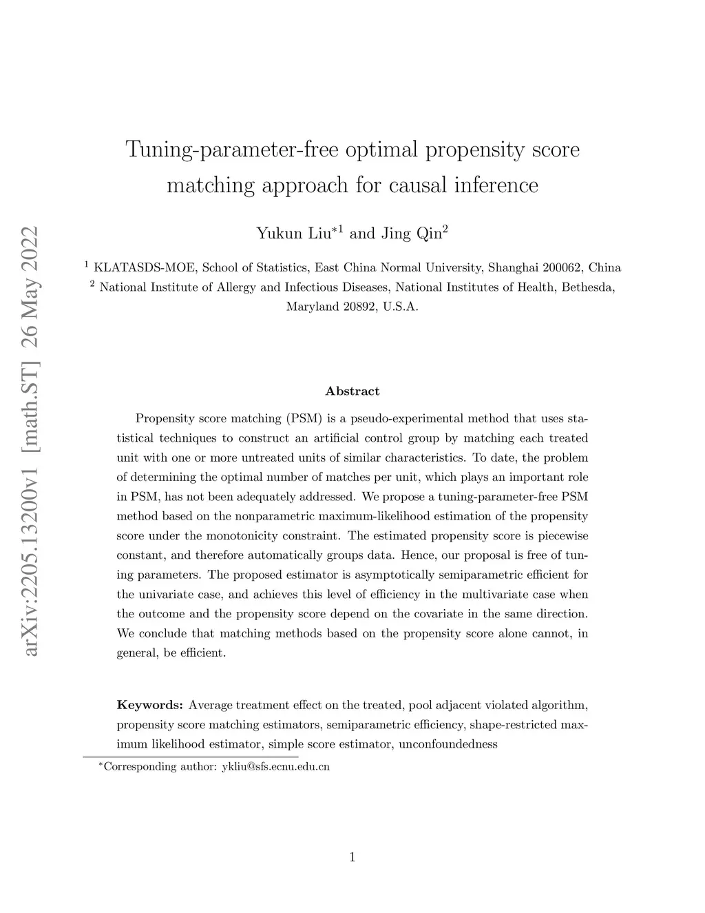 Propensity score matching (PSM) is a pseudo-experimental method that uses statistical techniques to construct an artificial control group by matching each treated unit with one or more untreated units of similar characteristics. To date, the problem of determining the optimal number of matches per unit, which plays an important role in PSM, has not been adequately addressed. We propose a tuning-parameter-free PSM method based on the nonparametric maximum-likelihood estimation of the propensity score under the monotonicity constraint. The estimated propensity score is piecewise constant, and therefore automatically groups data. Hence, our proposal is free of tuning parameters. The proposed estimator is asymptotically semiparametric efficient for the univariate case, and achieves this level of efficiency in the multivariate case when the outcome and the propensity score depend on the covariate in the same direction. We conclude that matching methods based on the propensity score alone cannot, in general, be efficient.