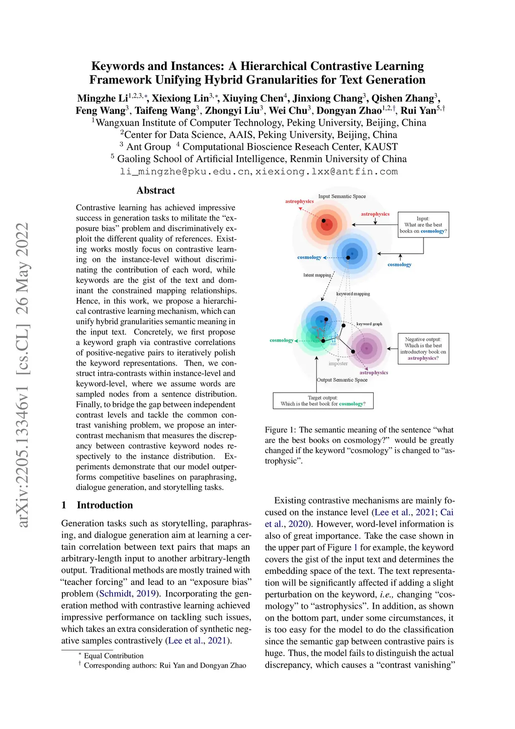 Keywords and Instances: A Hierarchical Contrastive Learning Framework Unifying Hybrid Granularities for Text Generation