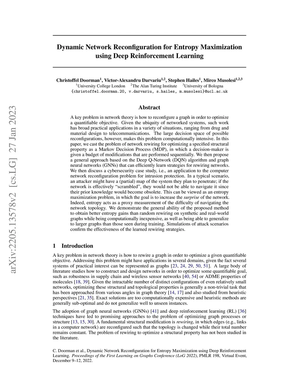 Dynamic Network Reconfiguration for Entropy Maximization using Deep