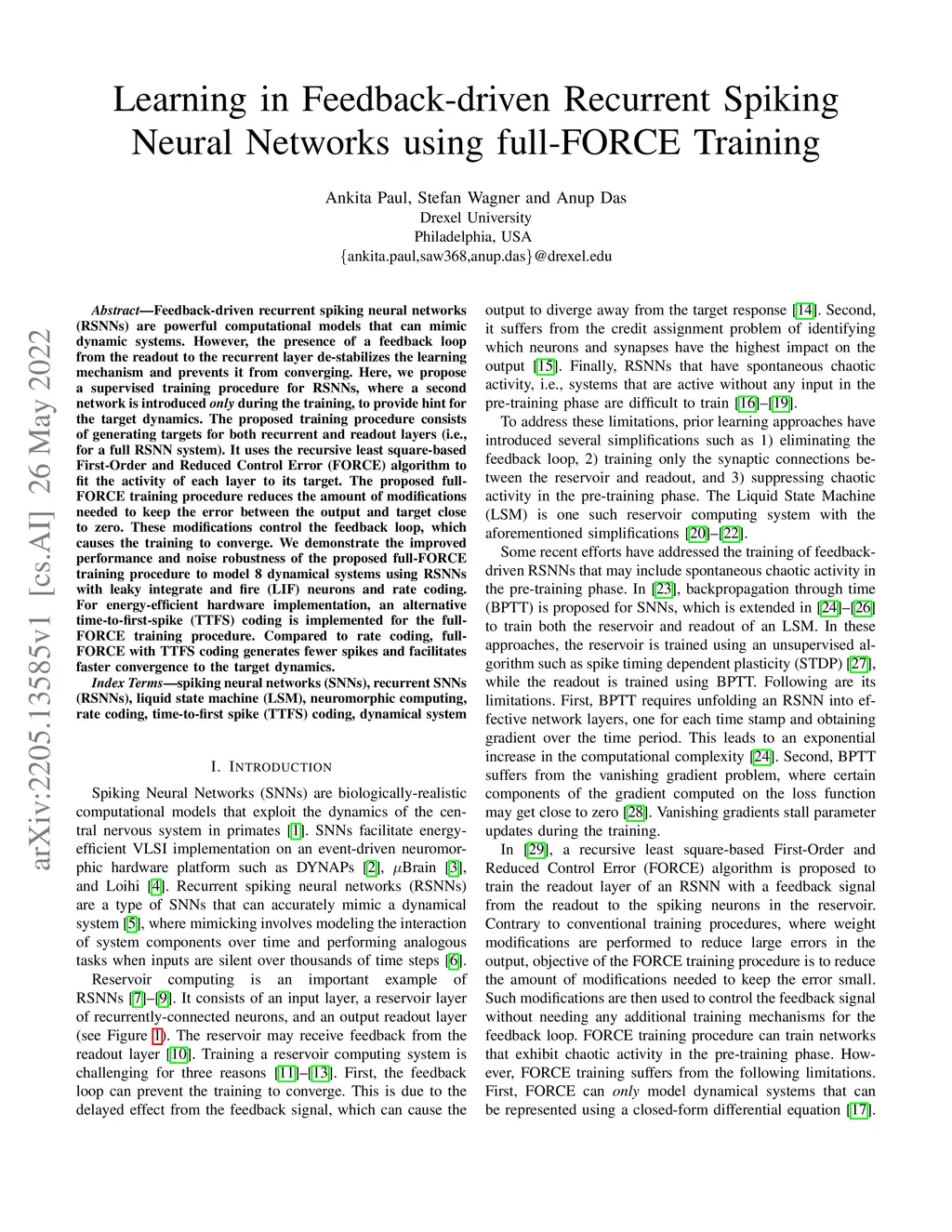 Feedback-driven recurrent spiking neural networks (RSNNs) are powerful computational models that can mimic dynamical systems. However, the presence of a feedback loop from the readout to the recurrent layer de-stabilizes the learning mechanism and prevents it from converging. Here, we propose a supervised training procedure for RSNNs, where a second network is introduced only during the training, to provide hint for the target dynamics. The proposed training procedure consists of generating targets for both recurrent and readout layers (i.e., for a full RSNN system). It uses the recursive least square-based First-Order and Reduced Control Error (FORCE) algorithm to fit the activity of each layer to its target. The proposed full-FORCE training procedure reduces the amount of modifications needed to keep the error between the output and target close to zero. These modifications control the feedback loop, which causes the training to converge. We demonstrate the improved performance and noise robustness of the proposed full-FORCE training procedure to model 8 dynamical systems using RSNNs with leaky integrate and fire (LIF) neurons and rate coding. For energy-efficient hardware implementation, an alternative time-to-first-spike (TTFS) coding is implemented for the full- FORCE training procedure. Compared to rate coding, full-FORCE with TTFS coding generates fewer spikes and facilitates faster convergence to the target dynamics.
