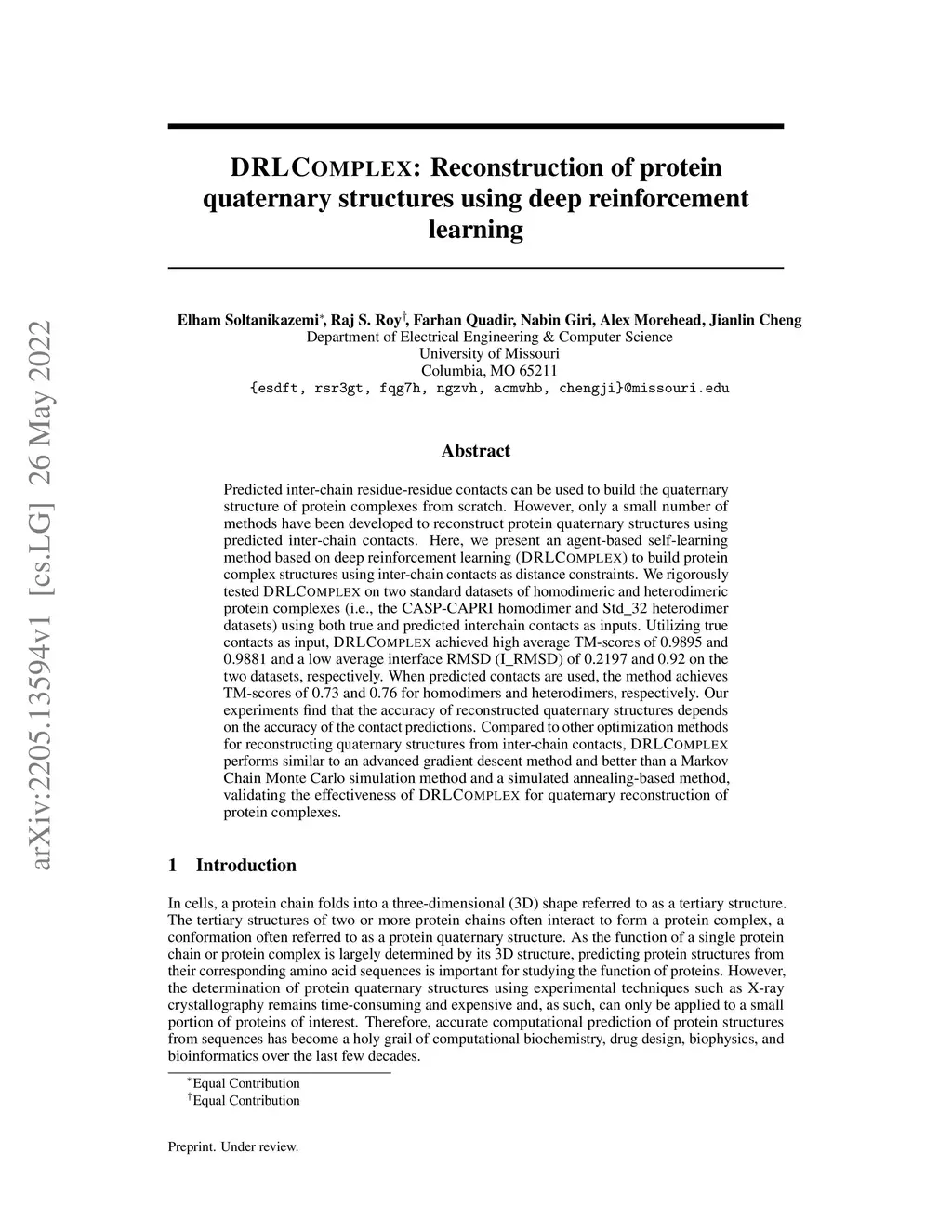 DRLComplex: Reconstruction of protein quaternary structures using deep