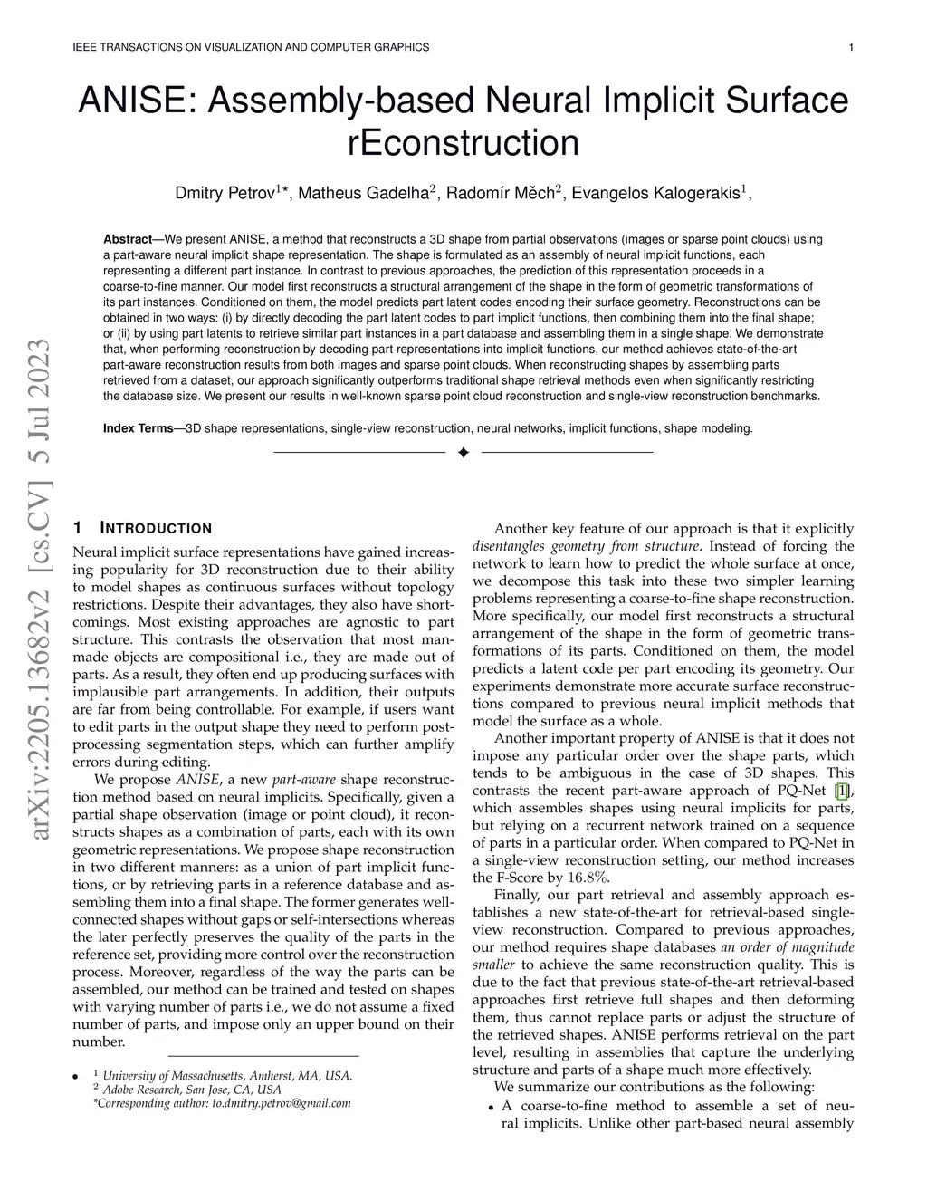 ANISE: Assembly-based Neural Implicit Surface rEconstruction
