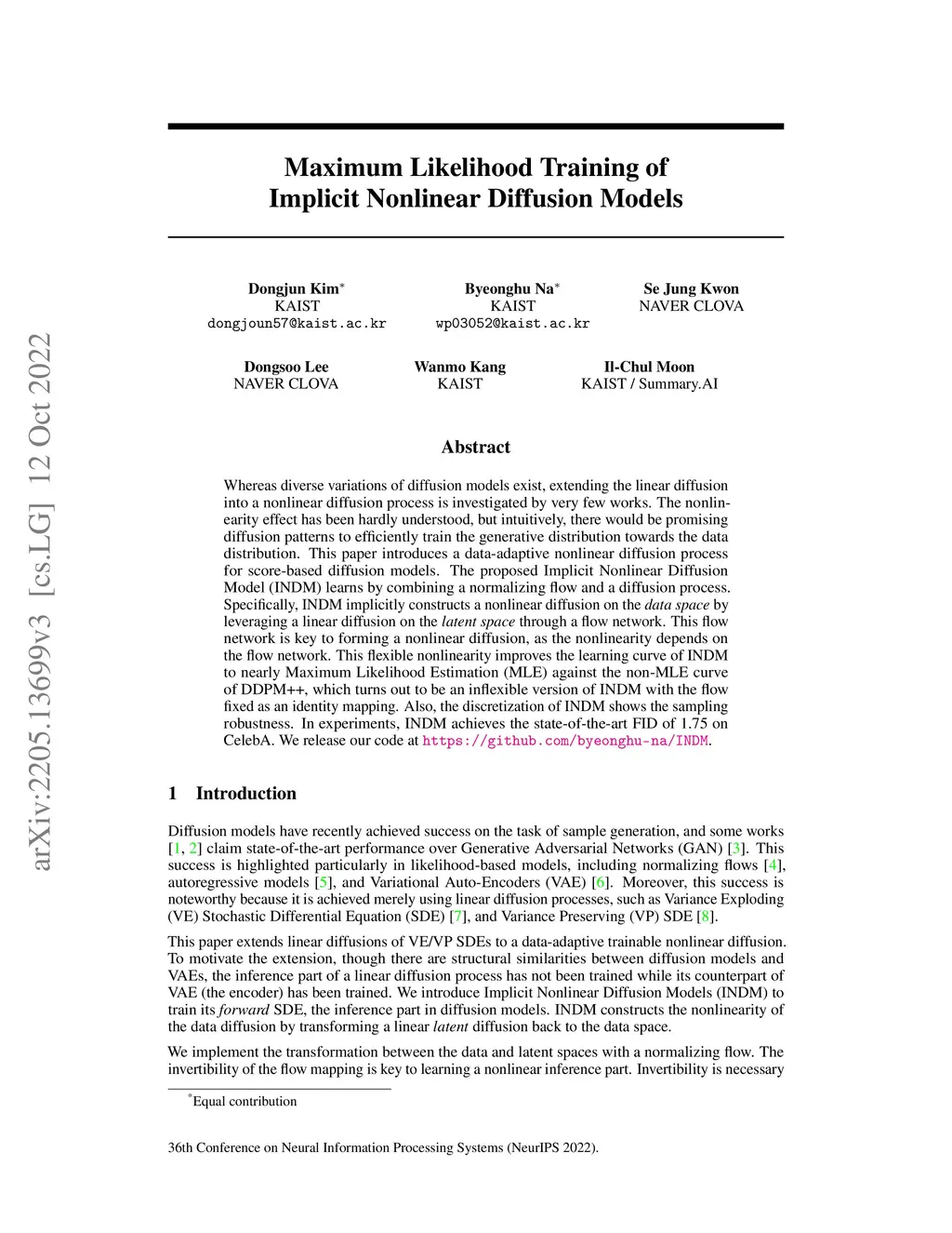 Maximum Likelihood Training of Implicit Nonlinear Diffusion Models