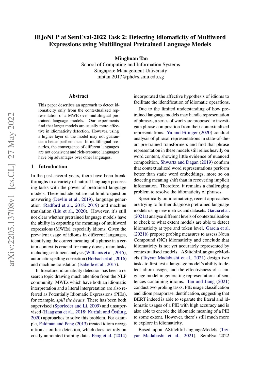 HiJoNLP at SemEval-2022 Task 2: Detecting Idiomaticity of Multiword