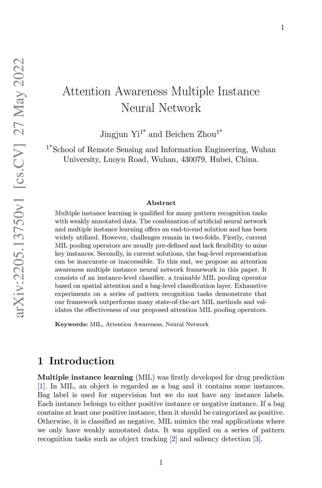 Multiple instance learning is qualified for many pattern recognition tasks with weakly annotated data. The combination of artificial neural network and multiple instance learning offers an end-to-end solution and has been widely utilized. However, challenges remain in two-folds. Firstly, current MIL pooling operators are usually pre-defined and lack flexibility to mine key instances. Secondly, in current solutions, the bag-level representation can be inaccurate or inaccessible. To this end, we propose an attention awareness multiple instance neural network framework in this paper. It consists of an instance-level classifier, a trainable MIL pooling operator based on spatial attention and a bag-level classification layer. Exhaustive experiments on a series of pattern recognition tasks demonstrate that our framework outperforms many state-of-the-art MIL methods and validates the effectiveness of our proposed attention MIL pooling operators.