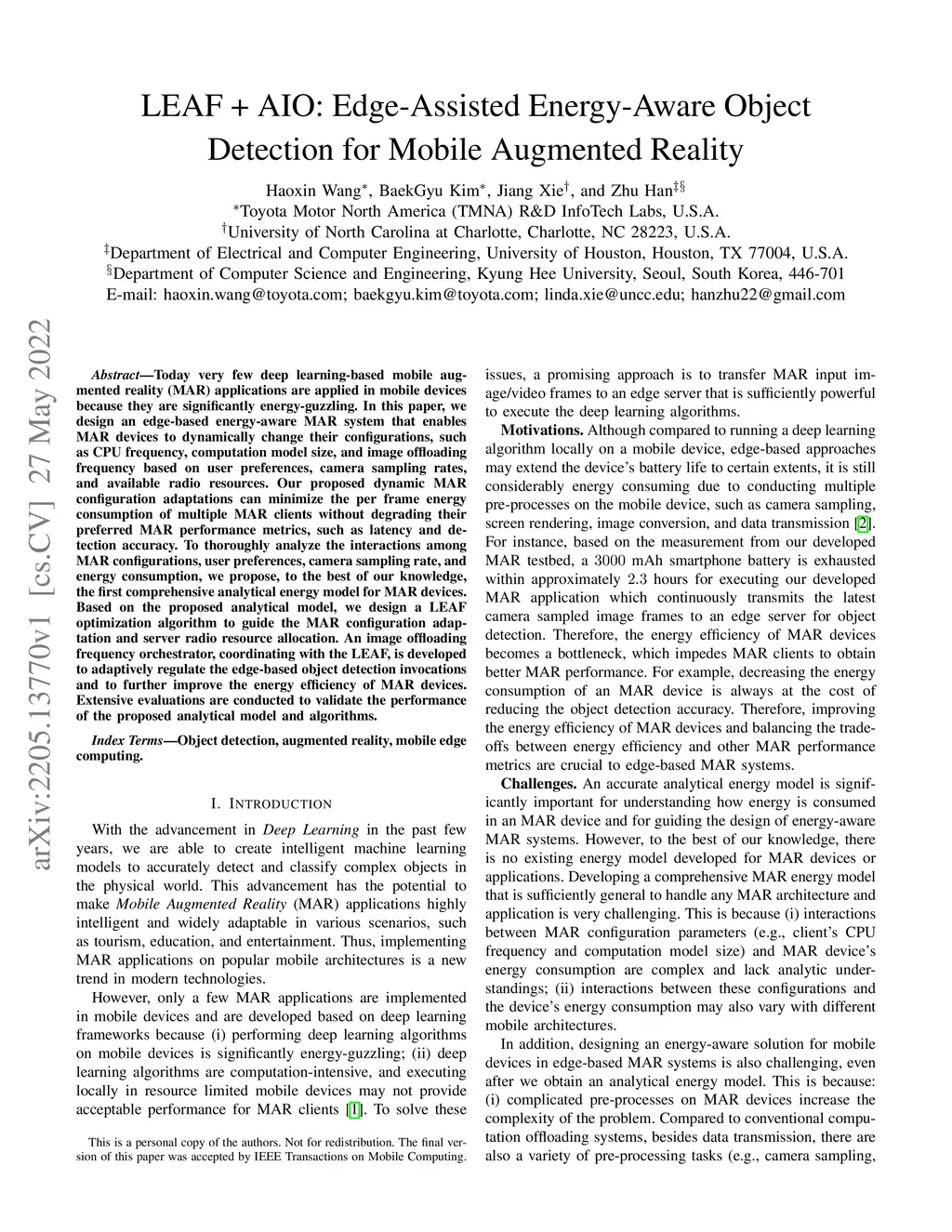 LEAF + AIO: Edge-Assisted Energy-Aware Object Detection for Mobile