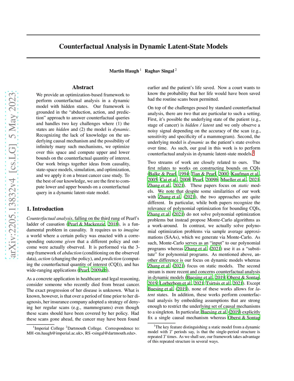 Counterfactual Analysis in Dynamic Latent State Models