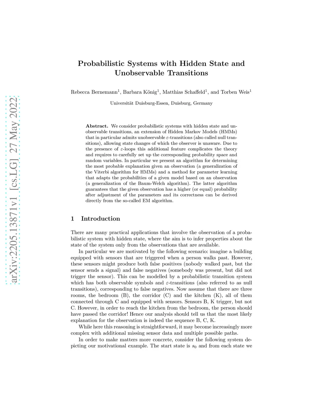 Probabilistic Systems with Hidden State and Unobservable Transitions