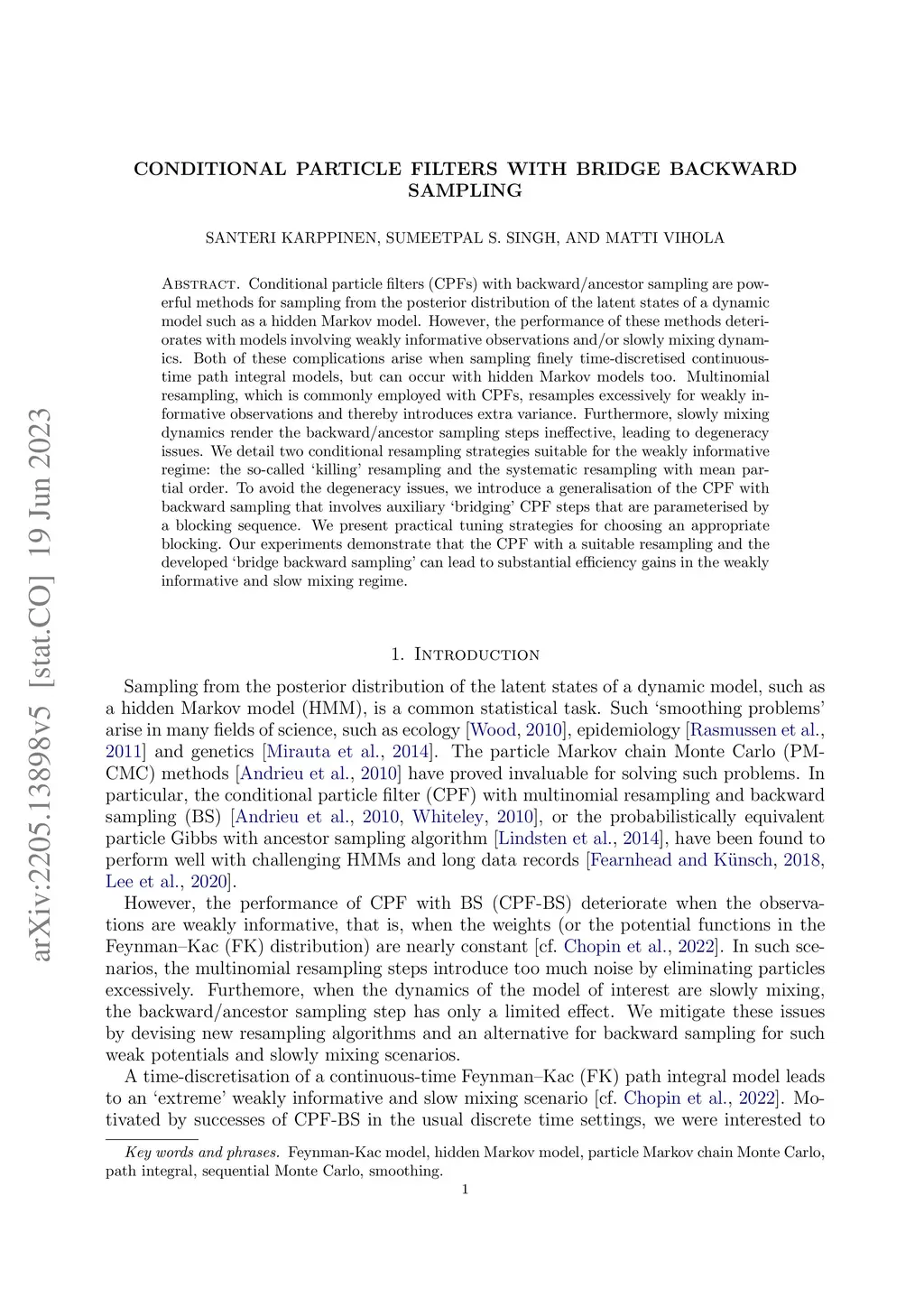 Conditional particle filters with bridge backward sampling