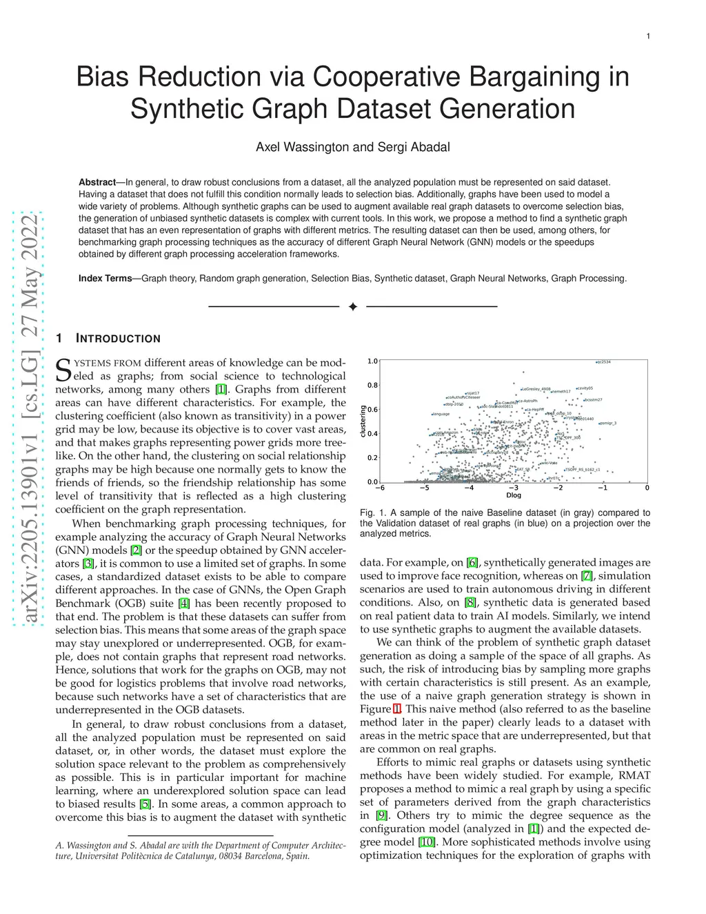 In general, to draw robust conclusions from a dataset, all the analyzed population must be represented on said dataset. Having a dataset that does not fulfill this condition normally leads to selection bias. Additionally, graphs have been used to model a wide variety of problems. Although synthetic graphs can be used to augment available real graph datasets to overcome selection bias, the generation of unbiased synthetic datasets is complex with current tools. In this work, we propose a method to find a synthetic graph dataset that has an even representation of graphs with different metrics. The resulting dataset can then be used, among others, for benchmarking graph processing techniques as the accuracy of different Graph Neural Network (GNN) models or the speedups obtained by different graph processing acceleration frameworks.