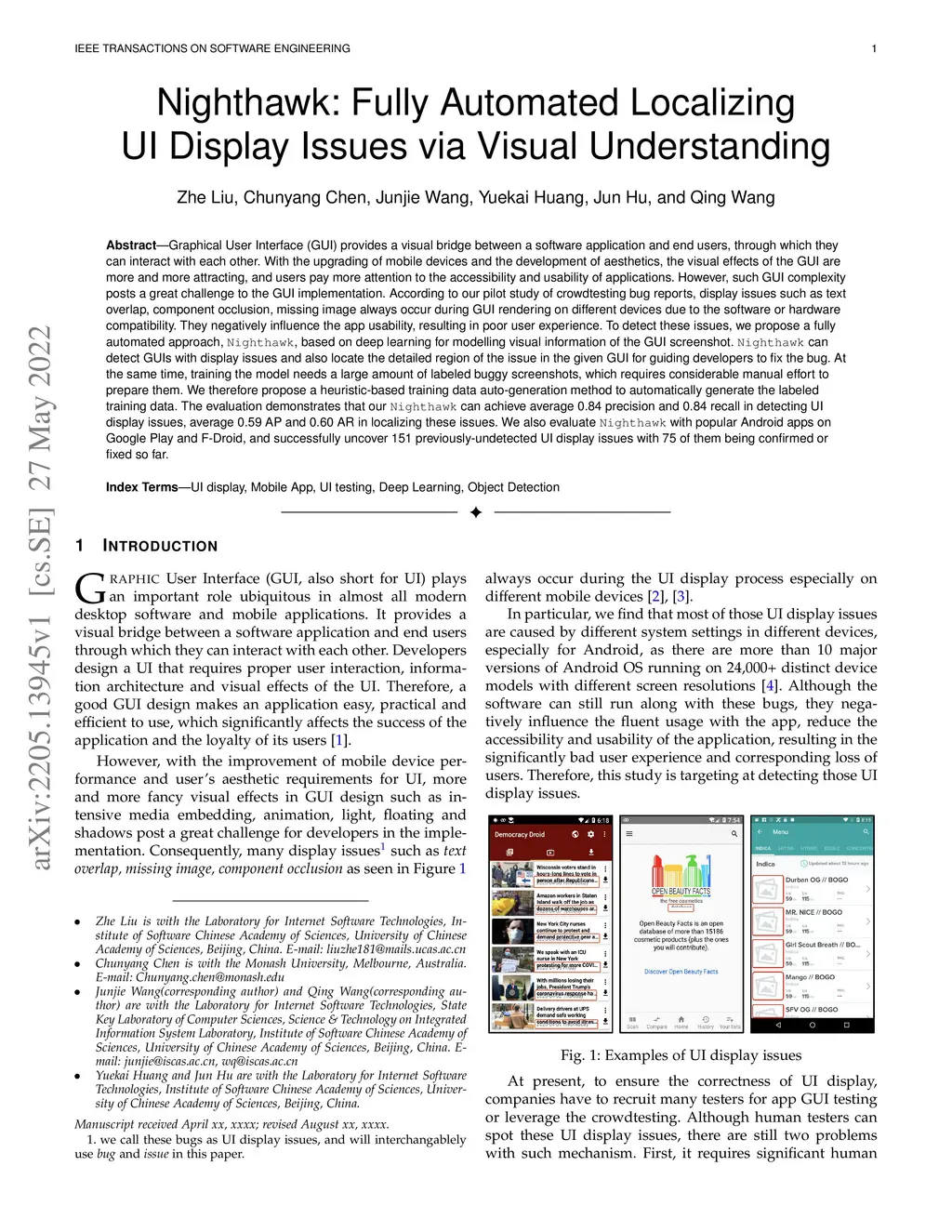 Nighthawk: Fully Automated Localizing UI Display Issues via Visual
