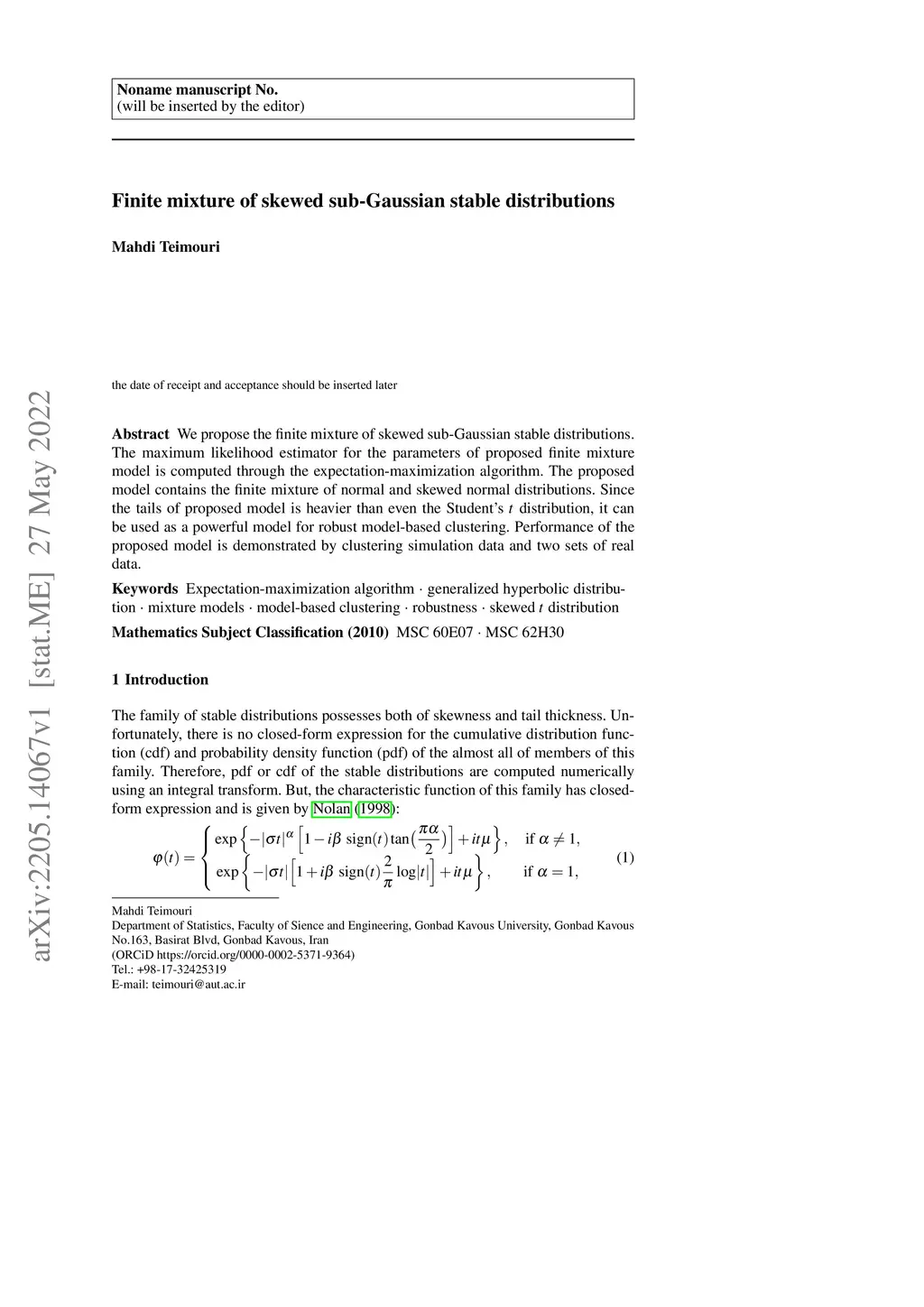 Finite mixture of skewed sub-Gaussian stable distributions