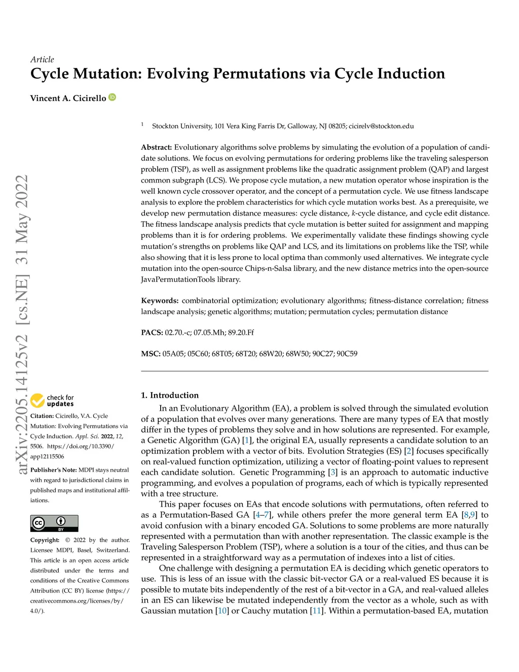Cycle Mutation: Evolving Permutations via Cycle Induction