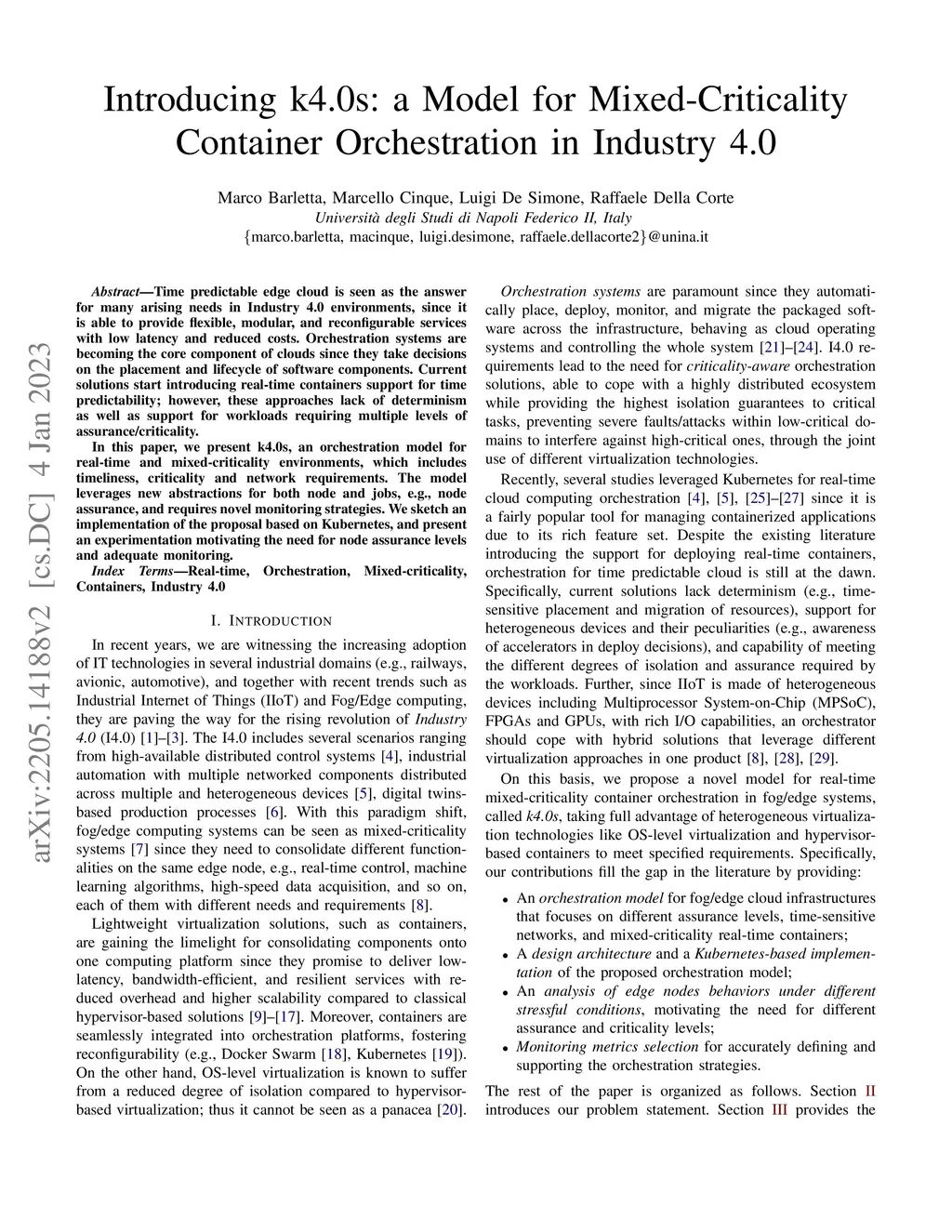 Introducing k4.0s: a Model for Mixed-Criticality Container Orchestration