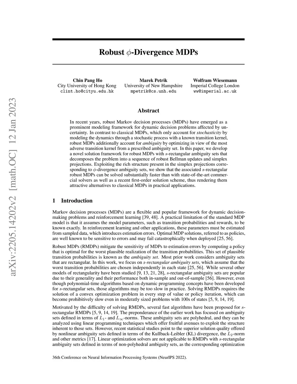 Robust Phi-Divergence MDPs