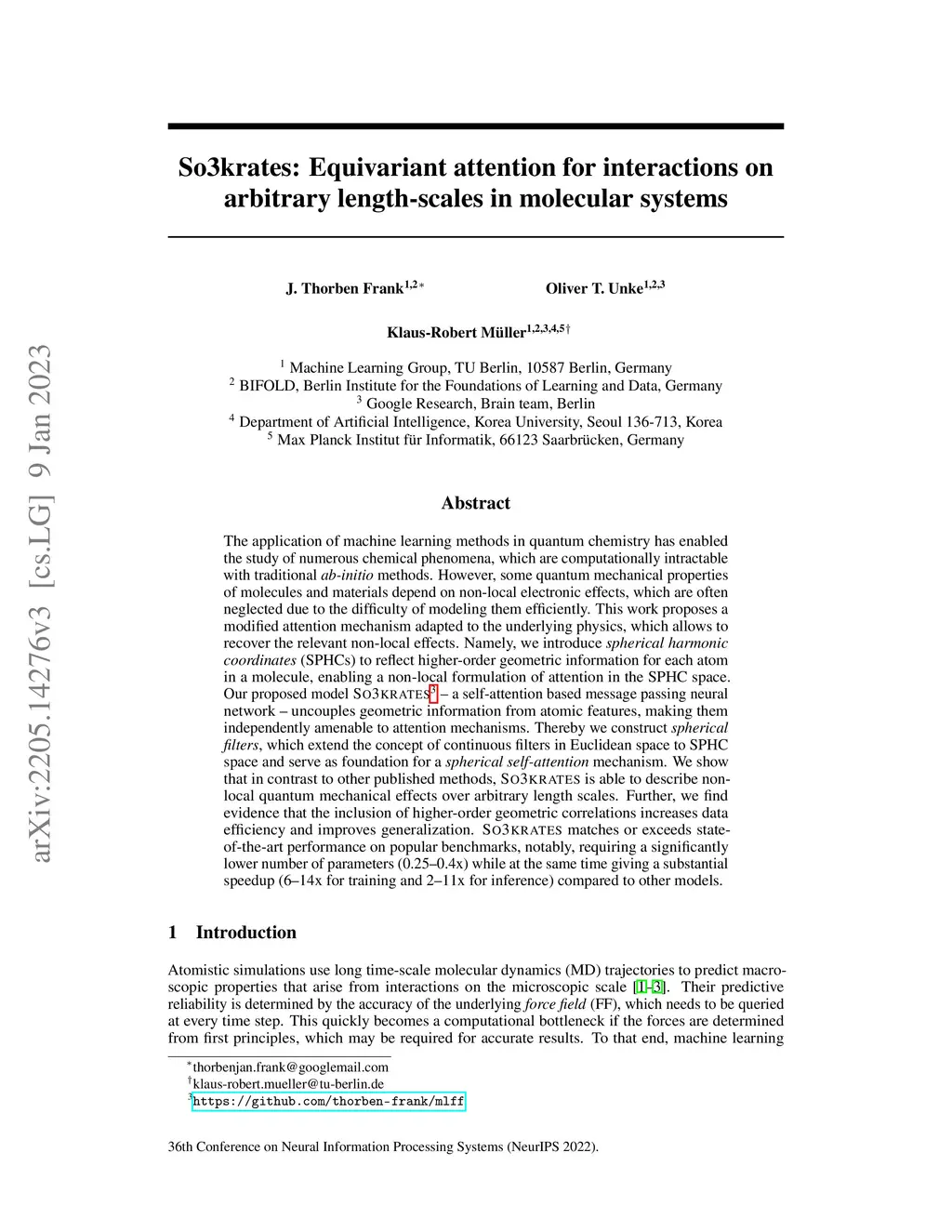 The application of machine learning methods in quantum chemistry has enabled the study of numerous chemical phenomena, which are computationally intractable with traditional ab-initio methods. However, some quantum mechanical properties of molecules and materials depend on non-local electronic effects, which are often neglected due to the difficulty of modeling them efficiently. This work proposes a modified attention mechanism adapted to the underlying physics, which allows to recover the relevant non-local effects. Namely, we introduce spherical harmonic coordinates (SPHCs) to reflect higher-order geometric information for each atom in a molecule, enabling a non-local formulation of attention in the SPHC space. Our proposed model So3krates - a self-attention based message passing neural network - uncouples geometric information from atomic features, making them independently amenable to attention mechanisms. Thereby we construct spherical filters, which extend the concept of continuous filters in Euclidean space to SPHC space and serve as foundation for a spherical self-attention mechanism. We show that in contrast to other published methods, So3krates is able to describe non-local quantum mechanical effects over arbitrary length scales. Further, we find evidence that the inclusion of higher-order geometric correlations increases data efficiency and improves generalization. So3krates matches or exceeds state-of-the-art performance on popular benchmarks, notably, requiring a significantly lower number of parameters (0.25 - 0.4x) while at the same time giving a substantial speedup (6 - 14x for training and 2 - 11x for inference) compared to other models.