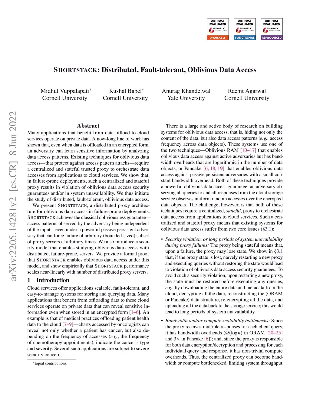 SHORTSTACK: Distributed, Fault-tolerant, Oblivious Data Access