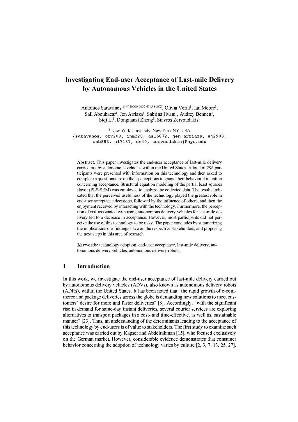 Investigating End-user Acceptance of Last-mile Delivery by Autonomous Vehicles in the United States
