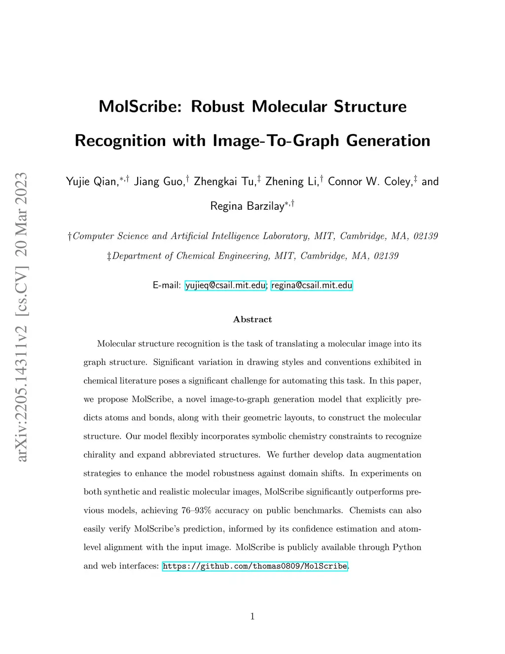 MolScribe: Robust Molecular Structure Recognition with Image-To-Graph