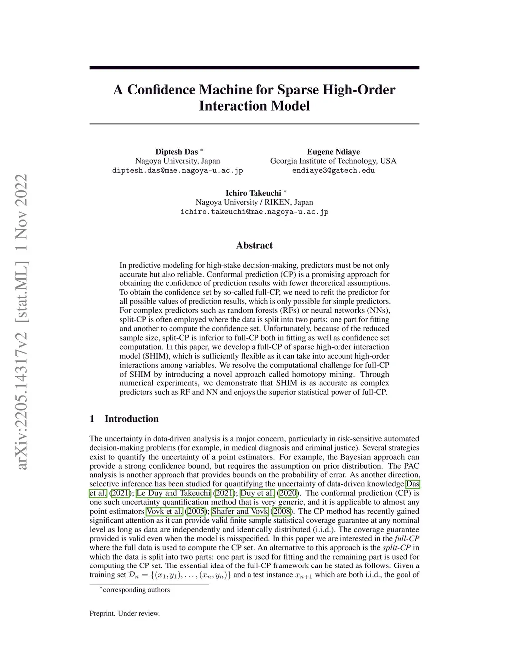 A Confidence Machine for Sparse High-Order Interaction Model
