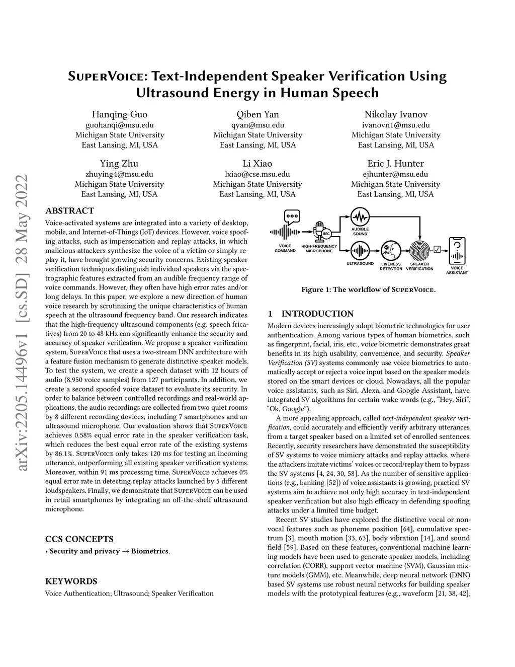 SuperVoice: Text-Independent Speaker Verification Using Ultrasound