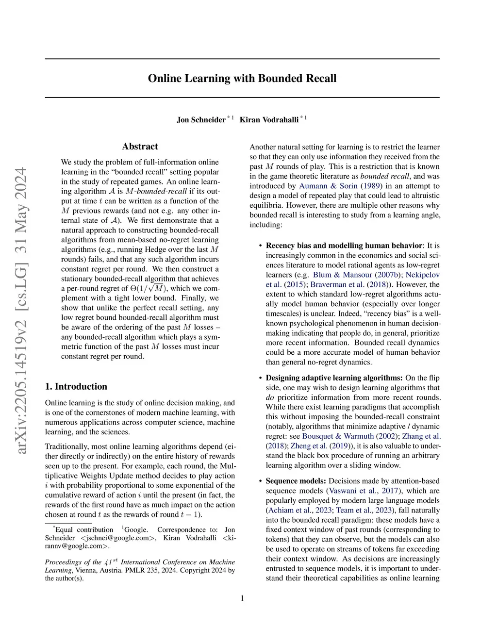 Online Learning with Bounded Recall
