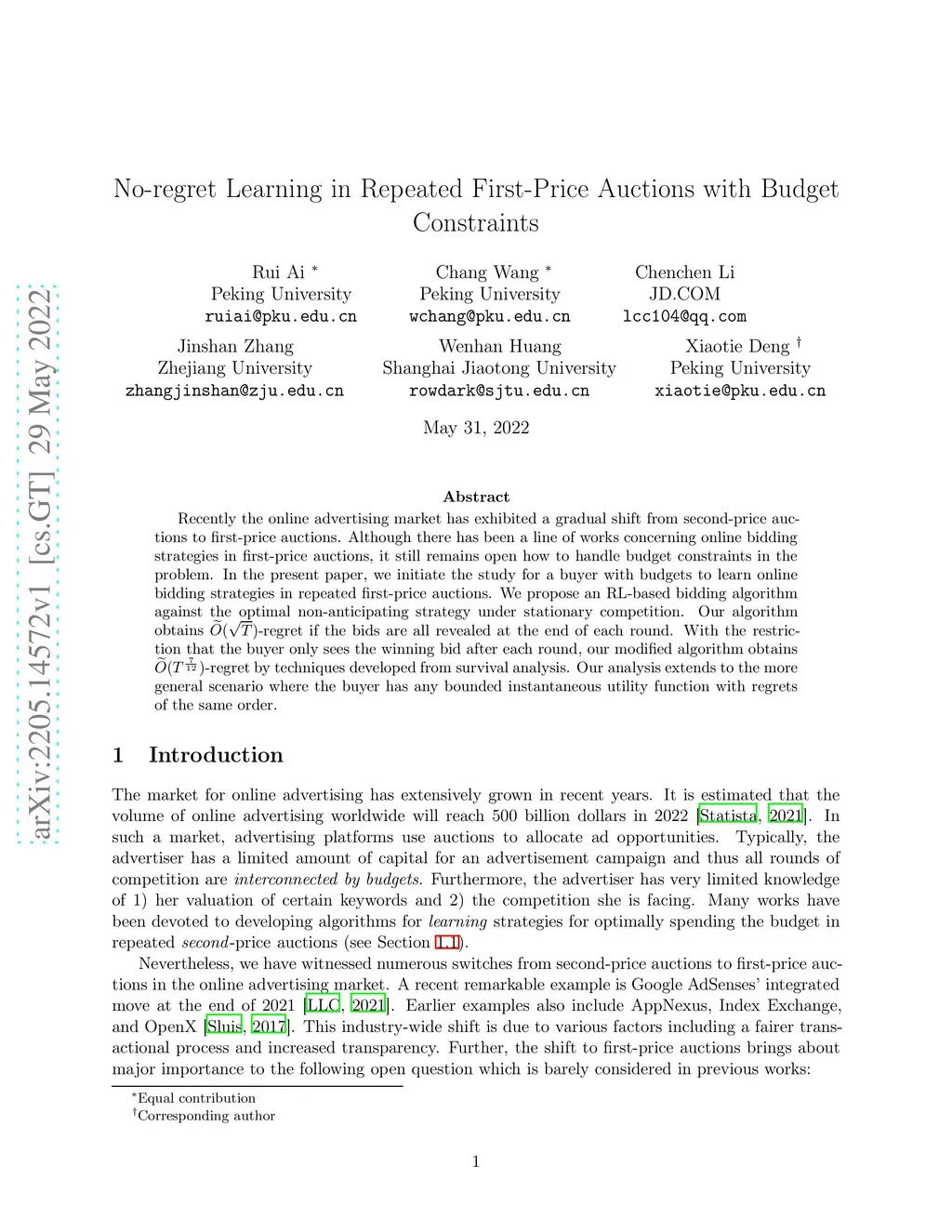 No-regret Learning in Repeated First-Price Auctions with Budget