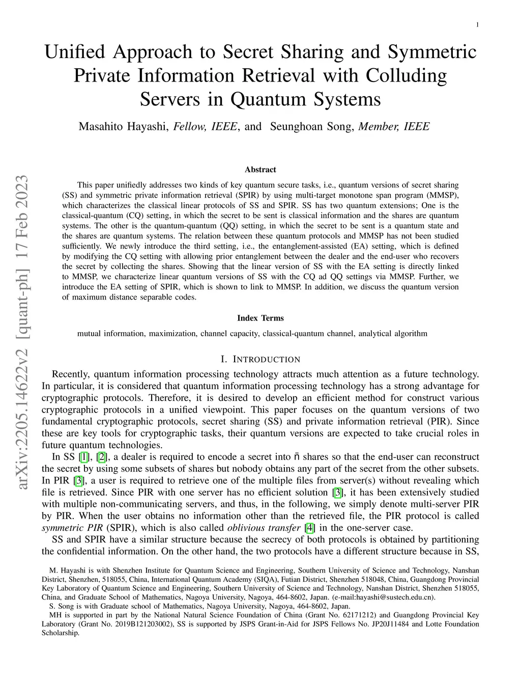 This paper unifiedly addresses two kinds of key quantum secure tasks, i.e., quantum versions of secret sharing (SS) and symmetric private information retrieval (SPIR) by using multi-target monotone span program (MMSP), which characterizes the classical linear protocols of SS and SPIR. In particular, two kinds of quantum extensions of SS are known; One is the classical-quantum (CQ) setting, in which the secret to be sent is classical information and the shares are quantum systems. The other is the quantum-quantum (QQ) setting, in which the secret to be sent is a quantum state and the shares are quantum systems. We newly introduce the third setting, i.e., the entanglement-assisted (EA) setting, which is defined by modifying the CQ setting with allowing prior entanglement between the dealer and the end-user who recovers the secret by collecting the shares. Showing that the linear version of SS with the EA setting is directly linked to MMSP, we characterize linear quantum versions of SS with the CQ ad QQ settings via MMSP. Further, we also introduce the EA setting of SPIR, which is shown to link to MMSP. In addition, we discuss the relation with the quantum version of maximum distance separable (MDS) codes.