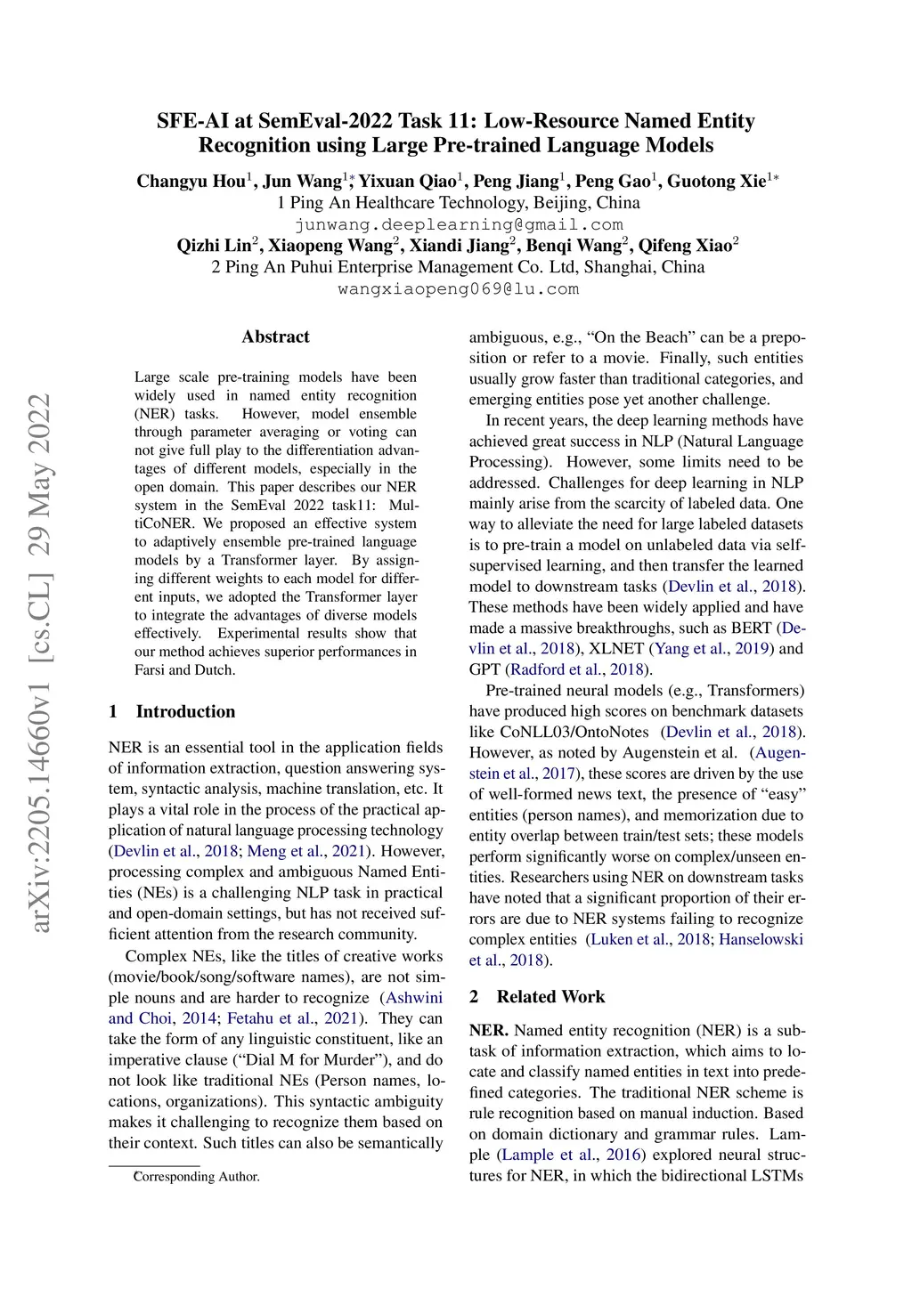 SFE-AI at SemEval-2022 Task 11: Low-Resource Named Entity Recognition
