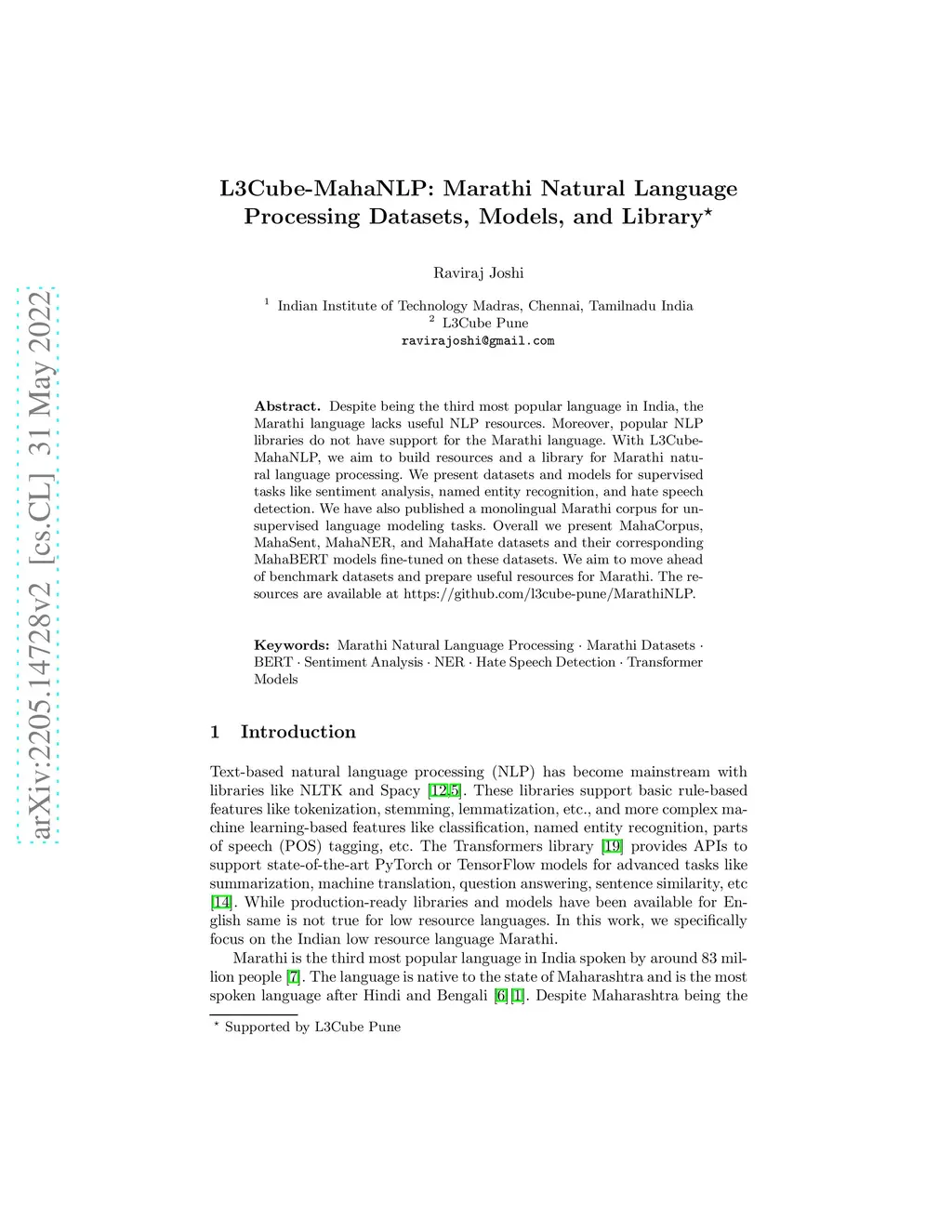 L3Cube-MahaNLP: Marathi Natural Language Processing Datasets, Models,