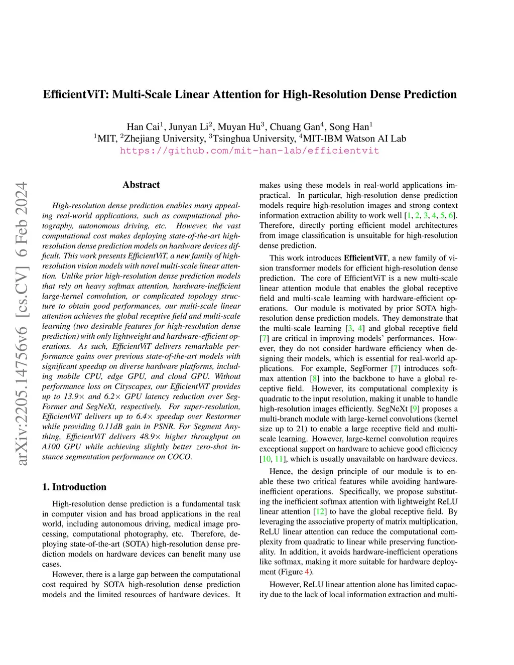 EfficientViT: Multi-Scale Linear Attention for High-Resolution Dense