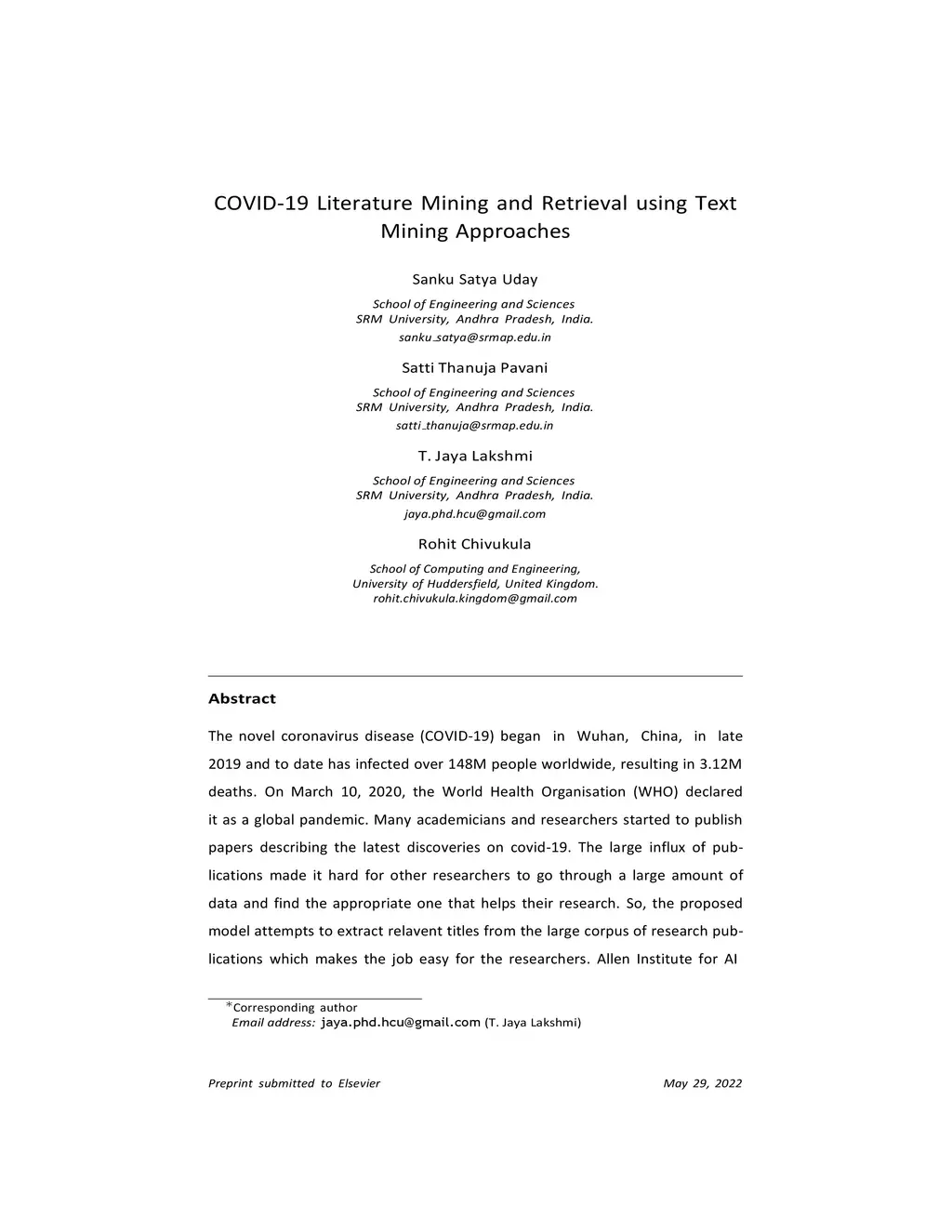 COVID-19 Literature Mining and Retrieval using Text Mining Approaches