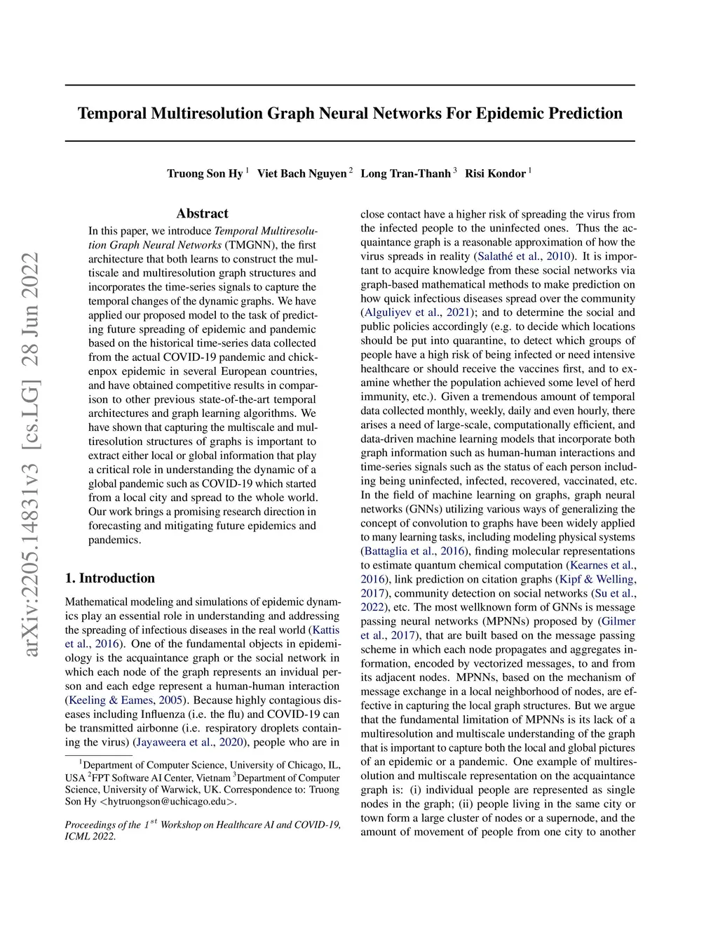 Temporal Multiresolution Graph Neural Networks For Epidemic Prediction