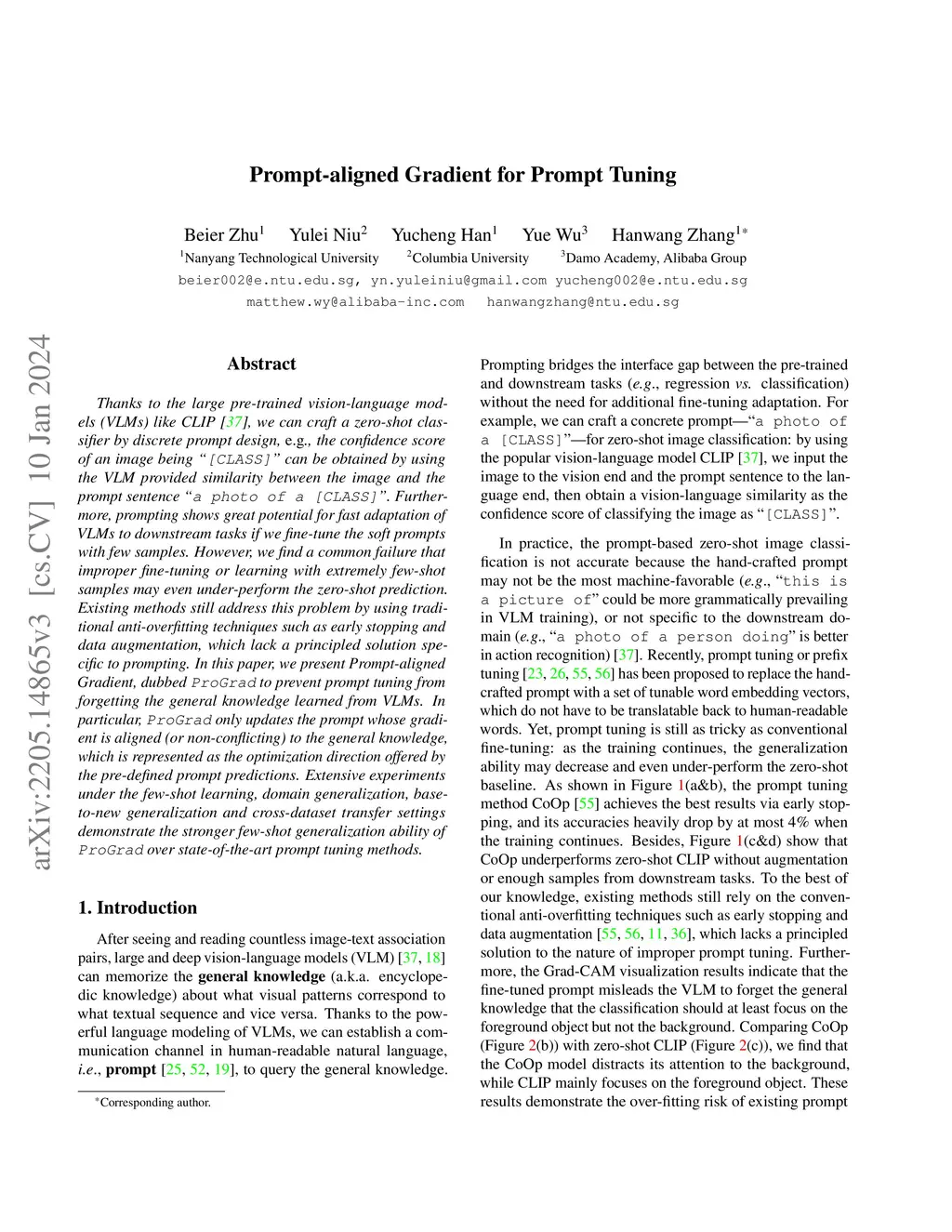 Prompt-aligned Gradient for Prompt Tuning