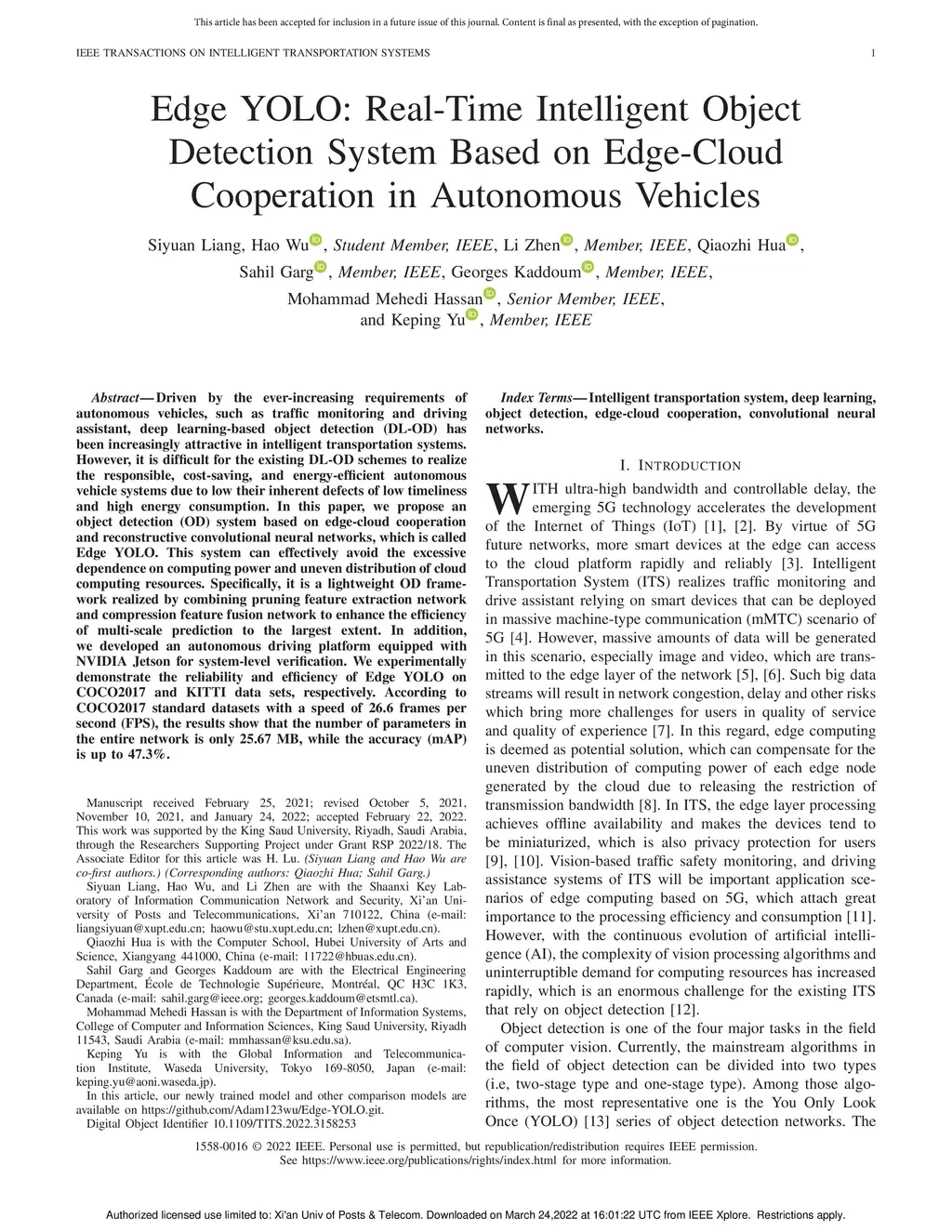 Edge YOLO: Real-Time Intelligent Object Detection System Based on