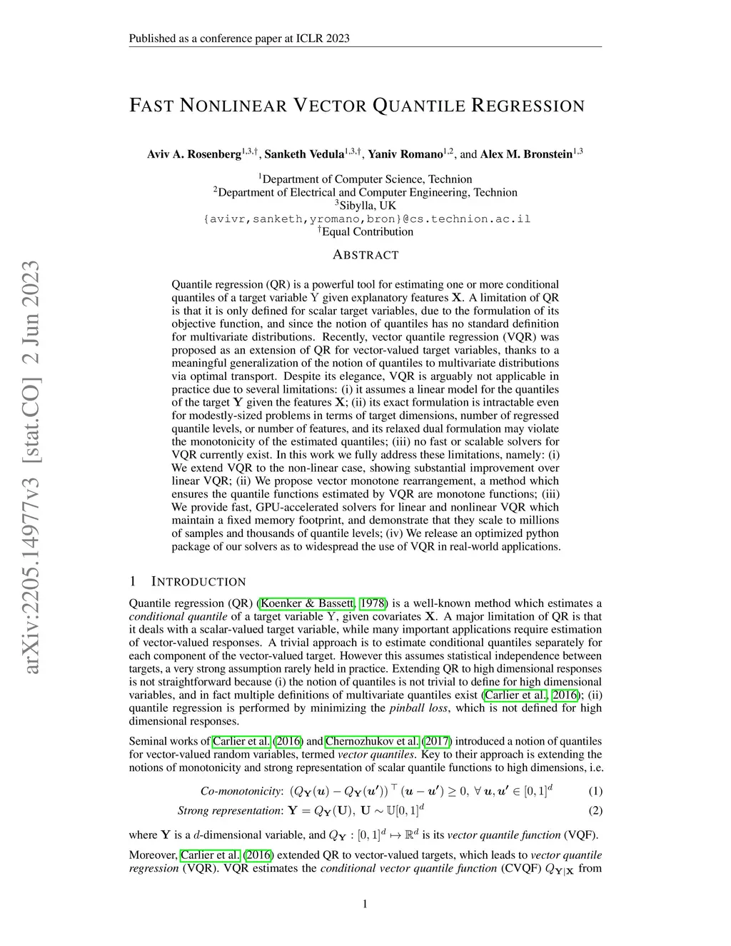 Quantile regression (QR) is a powerful tool for estimating one or more conditional quantiles of a target variable given explanatory features . A limitation of QR is that it is only defined for scalar target variables, due to the formulation of its objective function, and since the notion of quantiles has no standard definition for multivariate distributions. Recently, vector quantile regression (VQR) was proposed as an extension of QR for vector-valued target variables, thanks to a meaningful generalization of the notion of quantiles to multivariate distributions via optimal transport. Despite its elegance, VQR is arguably not applicable in practice due to several limitations: (i) it assumes a linear model for the quantiles of the target given the features ; (ii) its exact formulation is intractable even for modestly-sized problems in terms of target dimensions, number of regressed quantile levels, or number of features, and its relaxed dual formulation may violate the monotonicity of the estimated quantiles; (iii) no fast or scalable solvers for VQR currently exist. In this work we fully address these limitations, namely: (i) We extend VQR to the non-linear case, showing substantial improvement over linear VQR; (ii) We propose {vector monotone rearrangement}, a method which ensures the quantile functions estimated by VQR are monotone functions; (iii) We provide fast, GPU-accelerated solvers for linear and nonlinear VQR which maintain a fixed memory footprint, and demonstrate that they scale to millions of samples and thousands of quantile levels; (iv) We release an optimized python package of our solvers as to widespread the use of VQR in real-world applications.