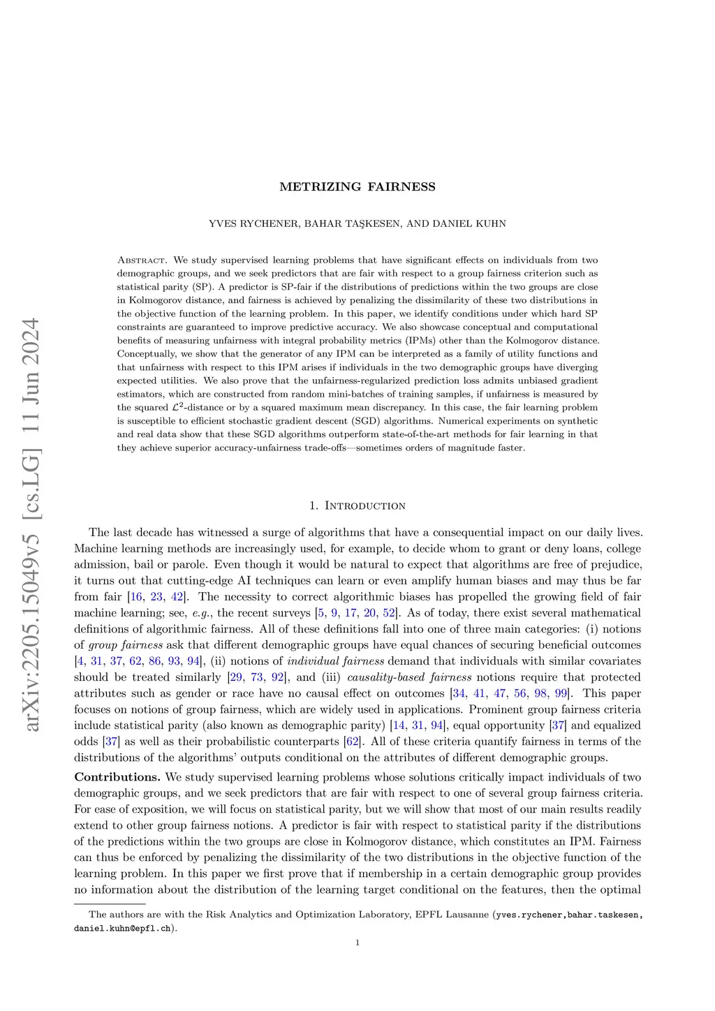 We study supervised learning problems that have significant effects on individuals from two demographic groups, and we seek predictors that are fair with respect to a group fairness criterion such as statistical parity (SP). A predictor is SP-fair if the distributions of predictions within the two groups are close in Kolmogorov distance, and fairness is achieved by penalizing the dissimilarity of these two distributions in the objective function of the learning problem. In this paper, we identify conditions under which hard SP constraints are guaranteed to improve predictive accuracy. We also showcase conceptual and computational benefits of measuring unfairness with integral probability metrics (IPMs) other than the Kolmogorov distance. Conceptually, we show that the generator of any IPM can be interpreted as a family of utility functions and that unfairness with respect to this IPM arises if individuals in the two demographic groups have diverging expected utilities. We also prove that the unfairness-regularized prediction loss admits unbiased gradient estimators, which are constructed from random mini-batches of training samples, if unfairness is measured by the squared -distance or by a squared maximum mean discrepancy. In this case, the fair learning problem is susceptible to efficient stochastic gradient descent (SGD) algorithms. Numerical experiments on synthetic and real data show that these SGD algorithms outperform state-of-the-art methods for fair learning in that they achieve superior accuracy-unfairness trade-offs -- sometimes orders of magnitude faster.