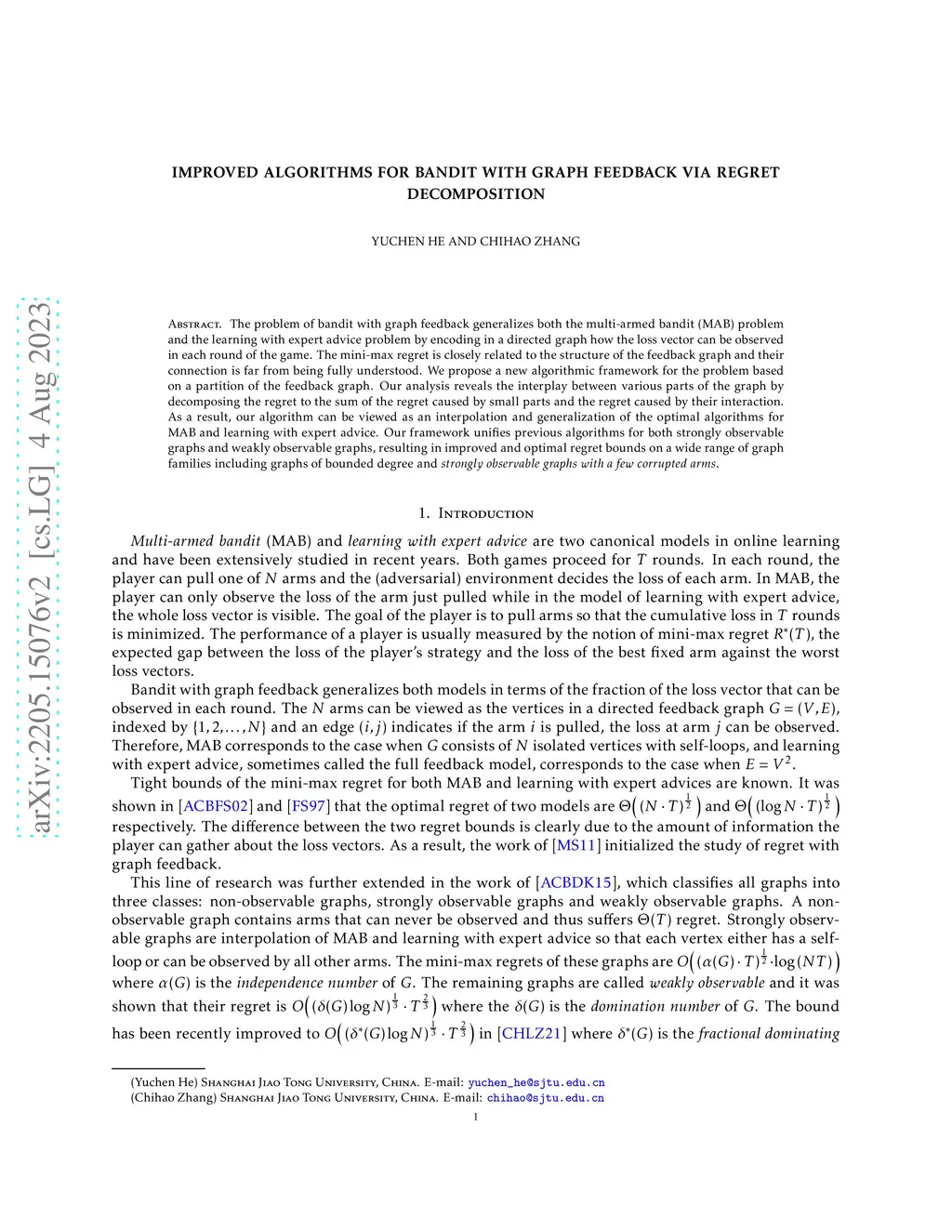 The problem of bandit with graph feedback generalizes both the multi-armed bandit (MAB) problem and the learning with expert advice problem by encoding in a directed graph how the loss vector can be observed in each round of the game. The mini-max regret is closely related to the structure of the feedback graph and their connection is far from being fully understood. We propose a new algorithmic framework for the problem based on a partition of the feedback graph. Our analysis reveals the interplay between various parts of the graph by decomposing the regret to the sum of the regret caused by small parts and the regret caused by their interaction. As a result, our algorithm can be viewed as an interpolation and generalization of the optimal algorithms for MAB and learning with expert advice. Our framework unifies previous algorithms for both strongly observable graphs and weakly observable graphs, resulting in improved and optimal regret bounds on a wide range of graph families including graphs of bounded degree and strongly observable graphs with a few corrupted arms.