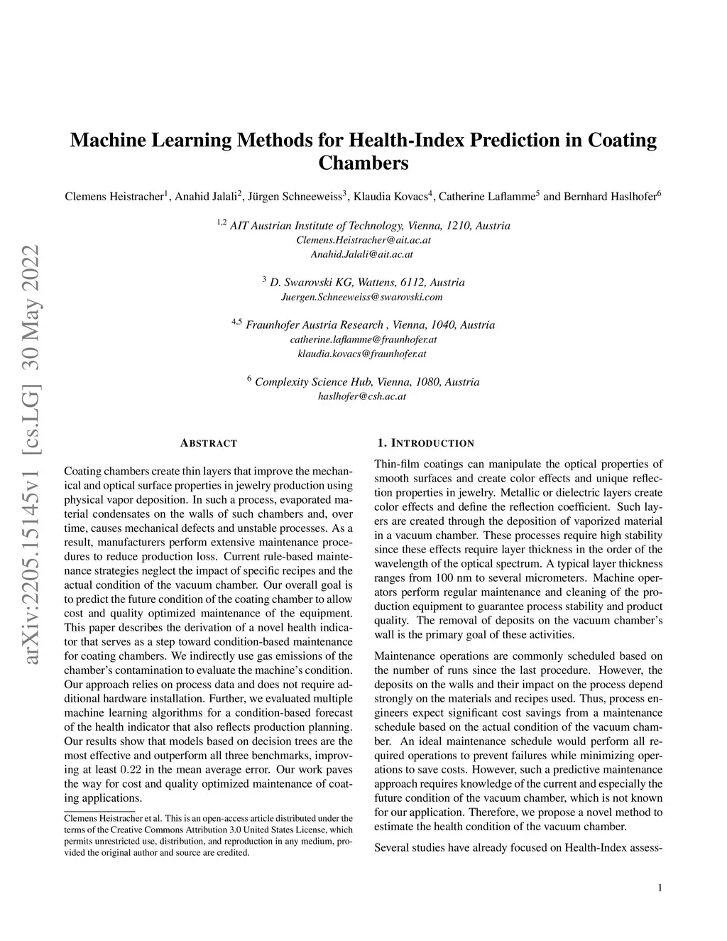 Machine Learning Methods for Health-Index Prediction in Coating Chambers