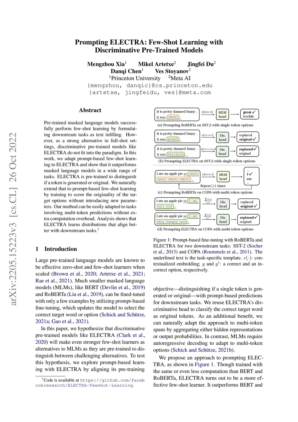 Prompting ELECTRA: Few-Shot Learning with Discriminative Pre-Trained
