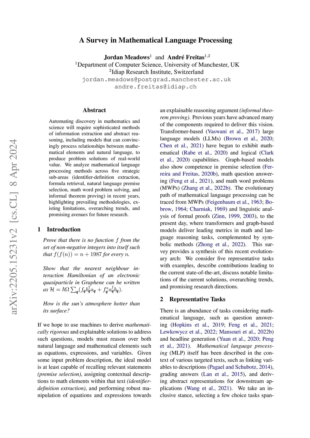 A Survey in Mathematical Language Processing