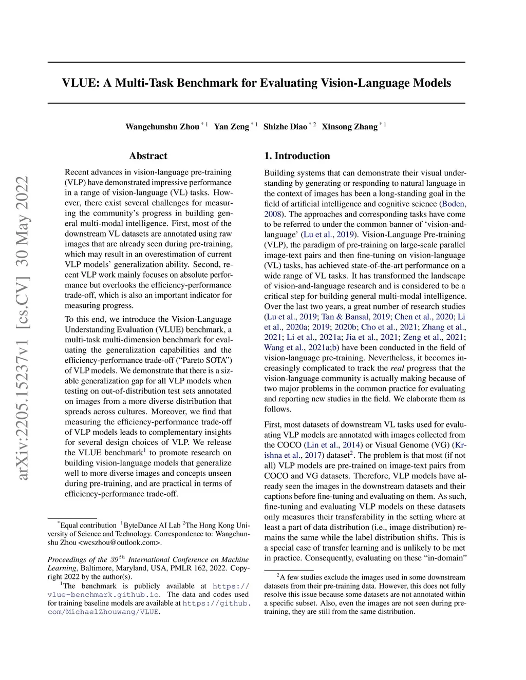 VLUE: A Multi-Task Benchmark for Evaluating Vision-Language Models