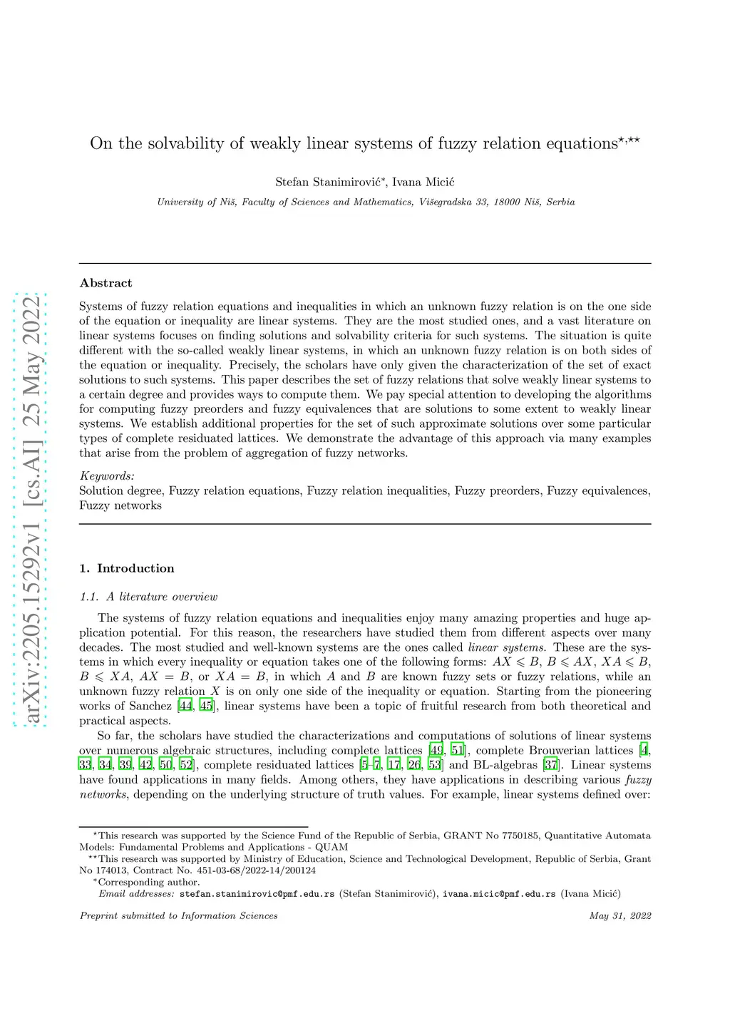 Systems of fuzzy relation equations and inequalities in which an unknown fuzzy relation is on the one side of the equation or inequality are linear systems. They are the most studied ones, and a vast literature on linear systems focuses on finding solutions and solvability criteria for such systems. The situation is quite different with the so-called weakly linear systems, in which an unknown fuzzy relation is on both sides of the equation or inequality. Precisely, the scholars have only given the characterization of the set of exact solutions to such systems. This paper describes the set of fuzzy relations that solve weakly linear systems to a certain degree and provides ways to compute them. We pay special attention to developing the algorithms for computing fuzzy preorders and fuzzy equivalences that are solutions to some extent to weakly linear systems. We establish additional properties for the set of such approximate solutions over some particular types of complete residuated lattices. We demonstrate the advantage of this approach via many examples that arise from the problem of aggregation of fuzzy networks.
