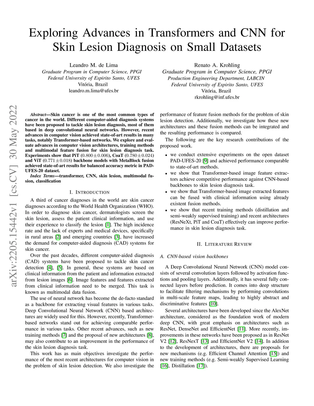 Skin cancer is one of the most common types of cancer in the world. Different computer-aided diagnosis systems have been proposed to tackle skin lesion diagnosis, most of them based in deep convolutional neural networks. However, recent advances in computer vision achieved state-of-art results in many tasks, notably Transformer-based networks. We explore and evaluate advances in computer vision architectures, training methods and multimodal feature fusion for skin lesion diagnosis task. Experiments show that PiT (), CoaT () and ViT () backbone models with MetaBlock fusion achieved state-of-art results for balanced accuracy metric in PAD-UFES-20 dataset.