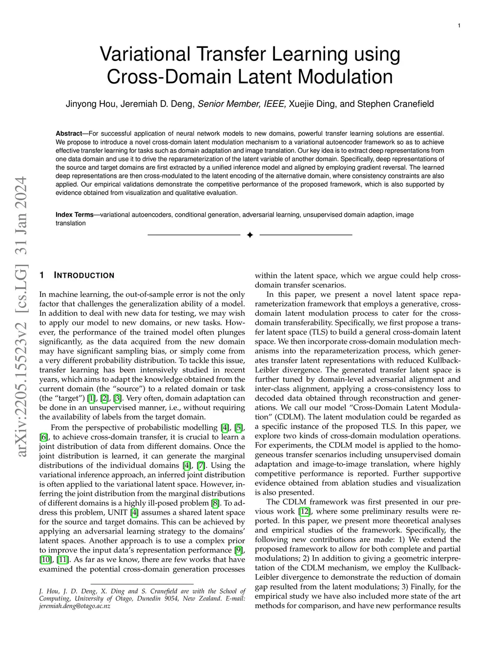 Variational Transfer Learning using Cross-Domain Latent Modulation