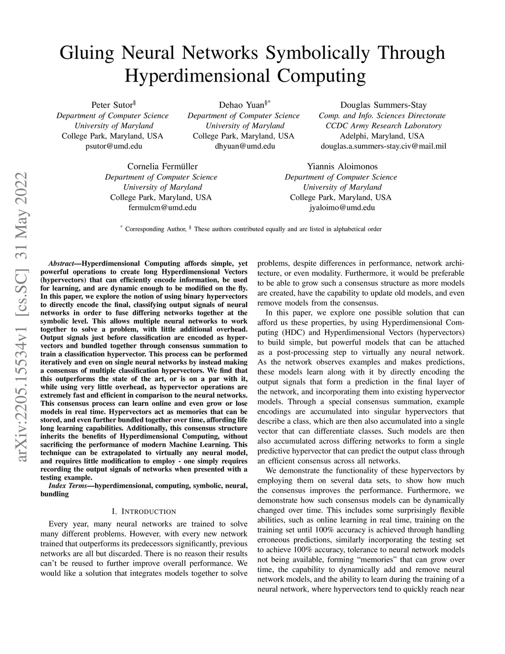 Gluing Neural Networks Symbolically Through Hyperdimensional Computing